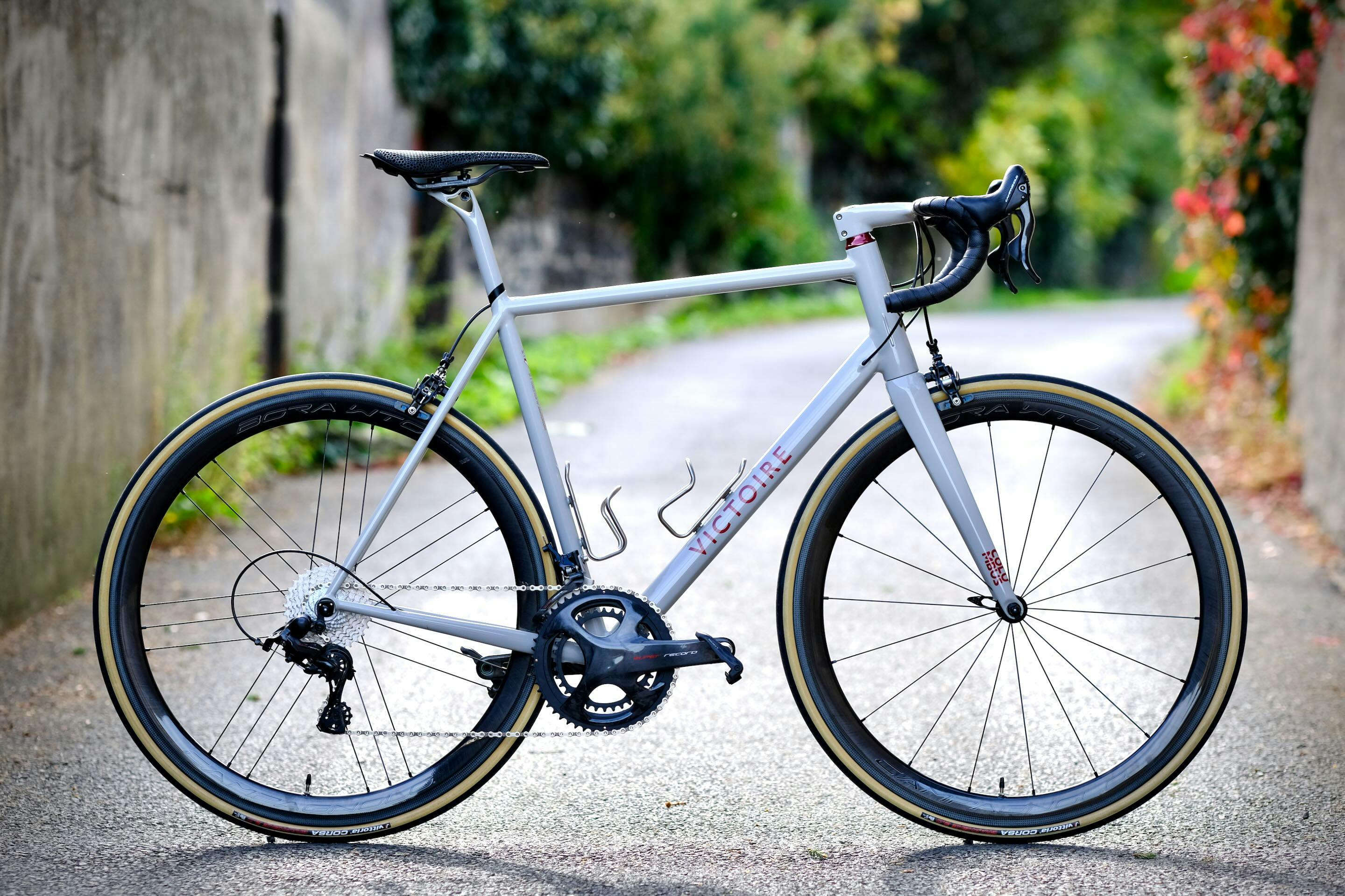 Bertrand's Victoire is the most sophisticated version of a rim-brake road bicycle we have made. It combines performance of materials and a sleek design.