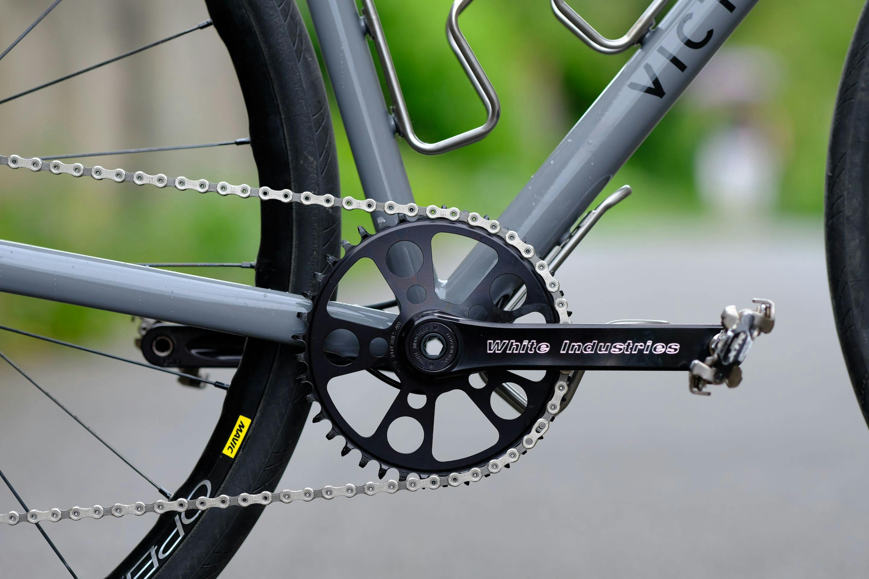 Alain has been a fan of single chainring drivetrains for years. He settled on a White Industries crankset, because he appreciates brands that manufacture in-house and in small batches.