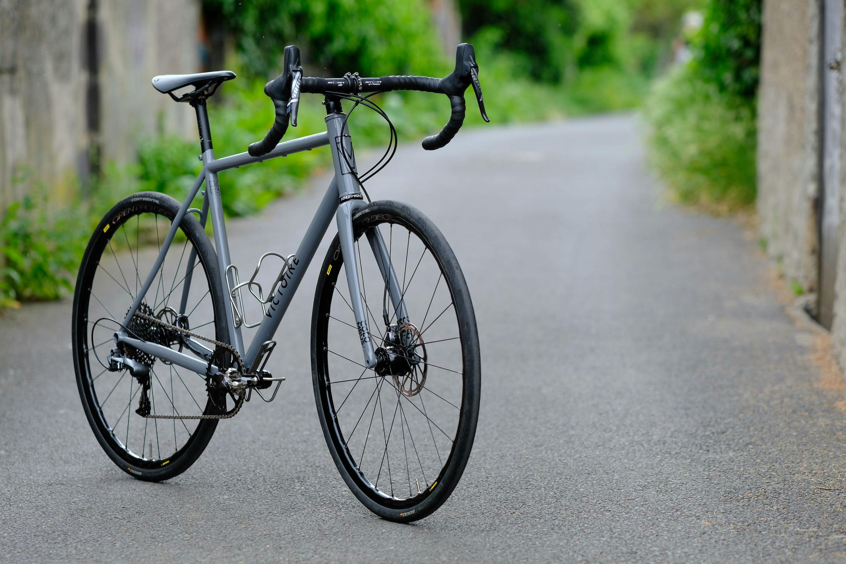The specifications were limited to very few things : in Alain’s own words, "a soft and old gray" paint color, a single chainring drivetrain, clearance for 32mm tires, and his favorite handlebar. He let us choose everything else, and we thank him for his trust.