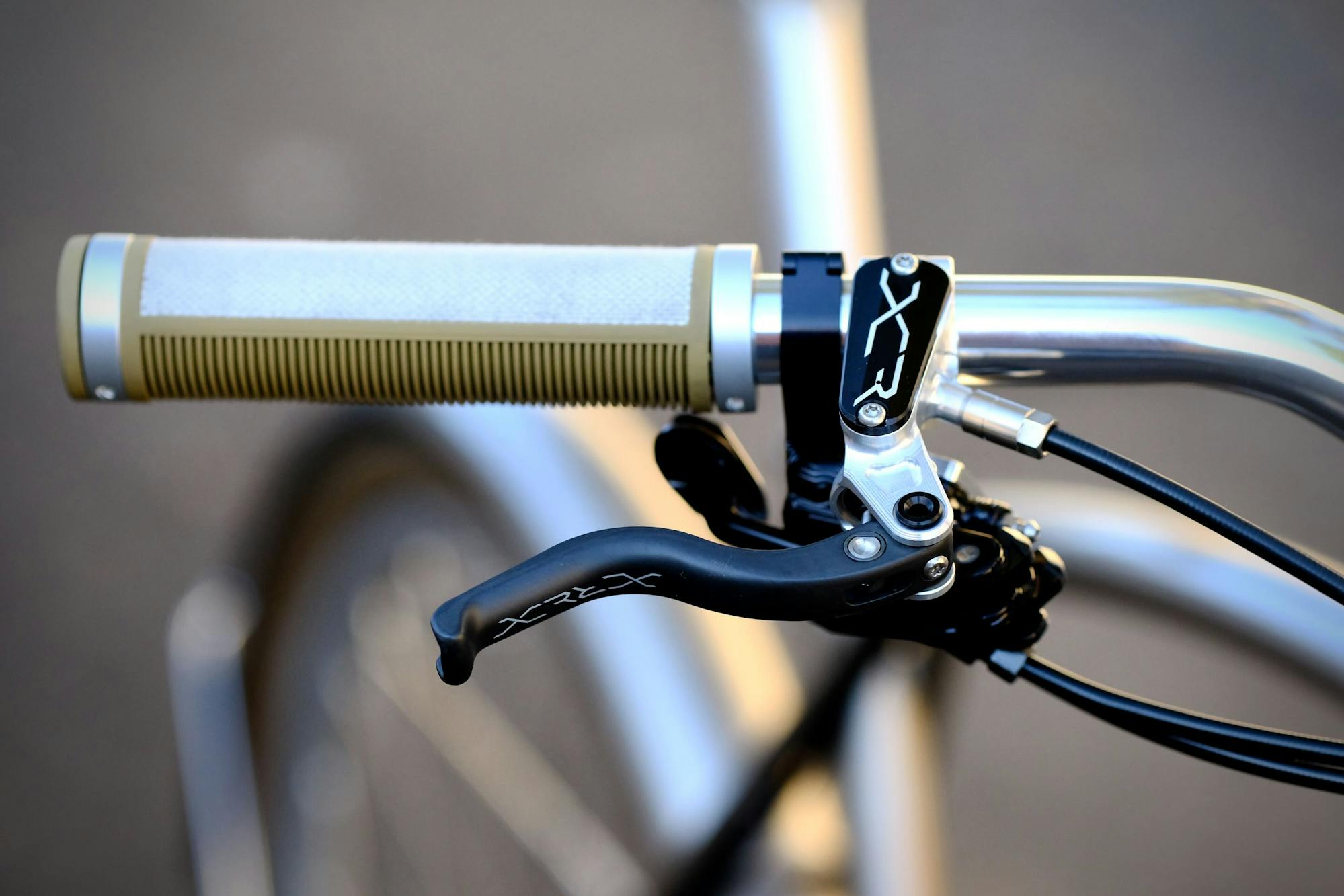 He also wanted Hope brakes and pedals, entirely manufactured in the Barnoldswick factory in England, whose aesthetic perfectly matched the sober frame of his machine.