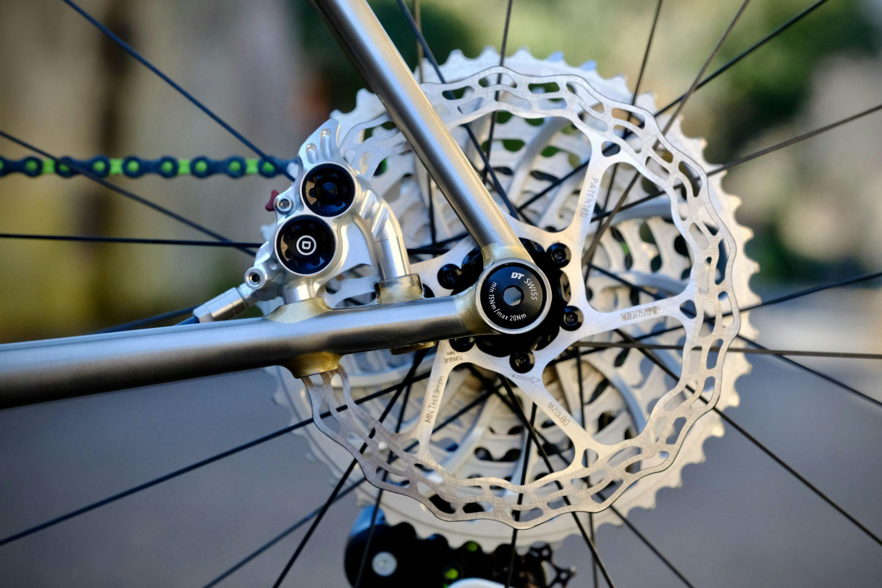 A road bike does not exclude powerful braking, which is why Didier chose Hope RX4 four-piston calipers. The four pistons, originally designed for off-road use, allow progressive and vigorous braking.