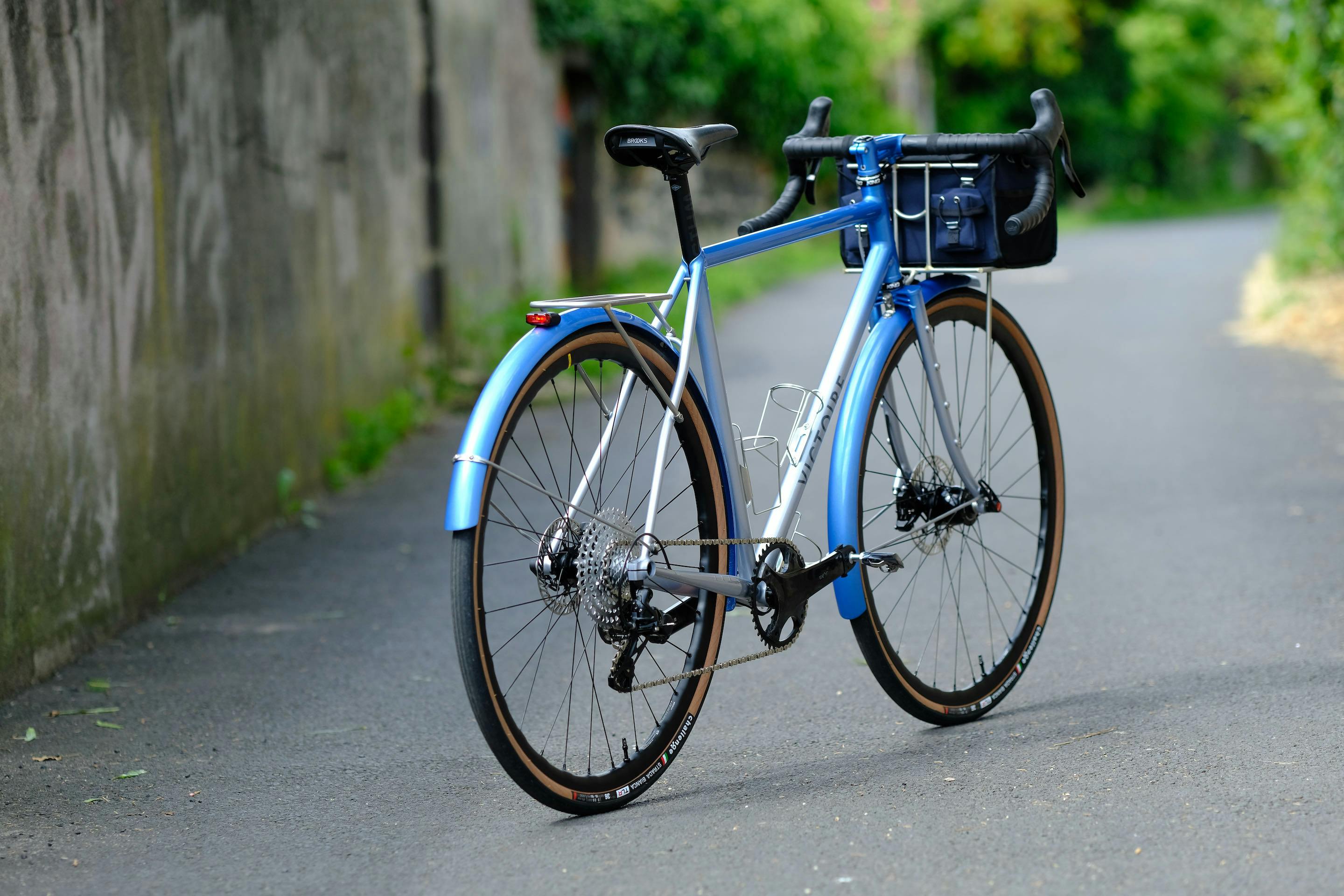 As for the majority of our hikers, the fork, the stem and the rack for the Fabien's Victoire were made in our workshop. They bring a traditional aesthetic to this bike, yet equipped with modern components: a single chainring, disc brakes as well as carbon mudguards.