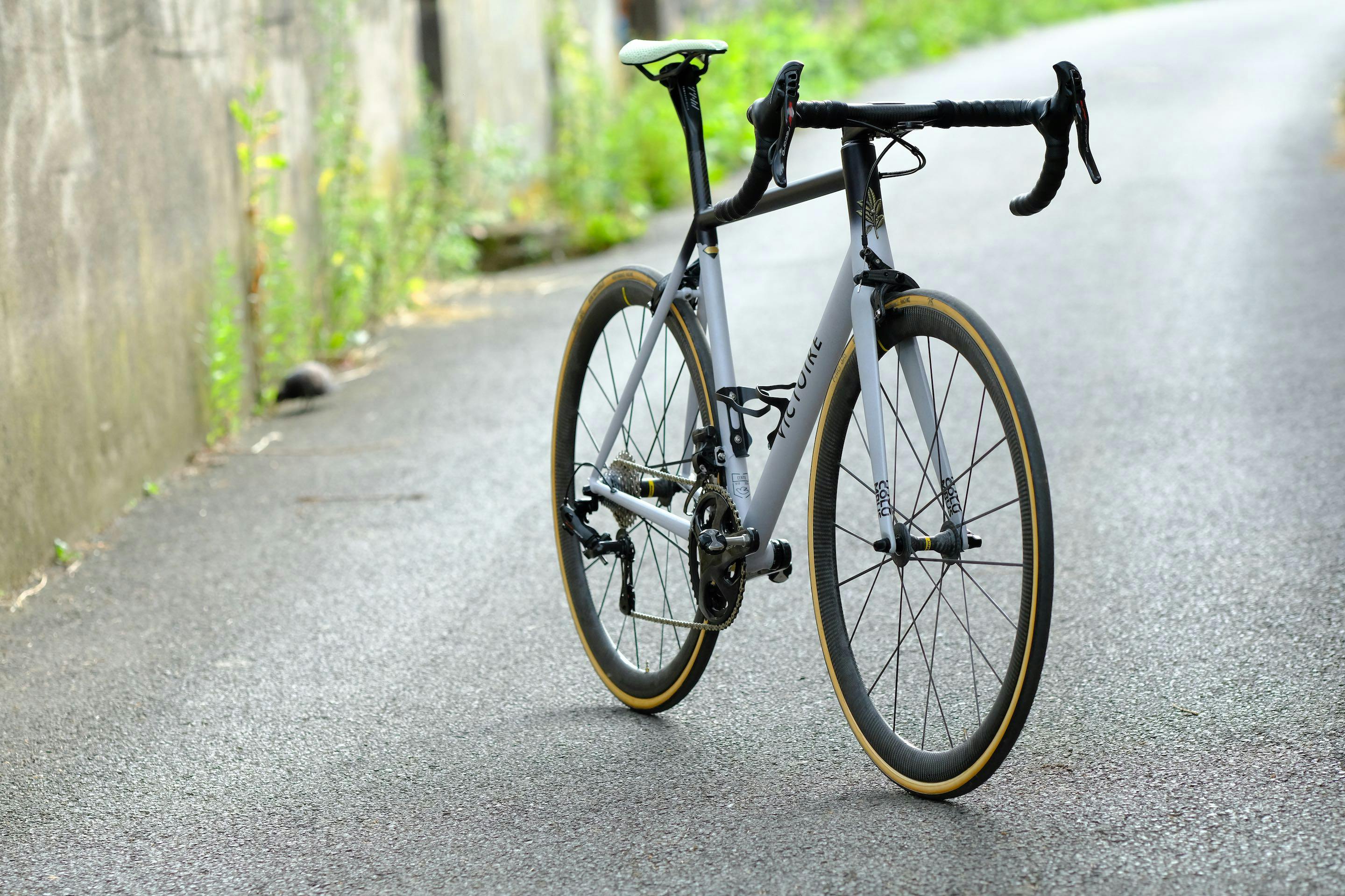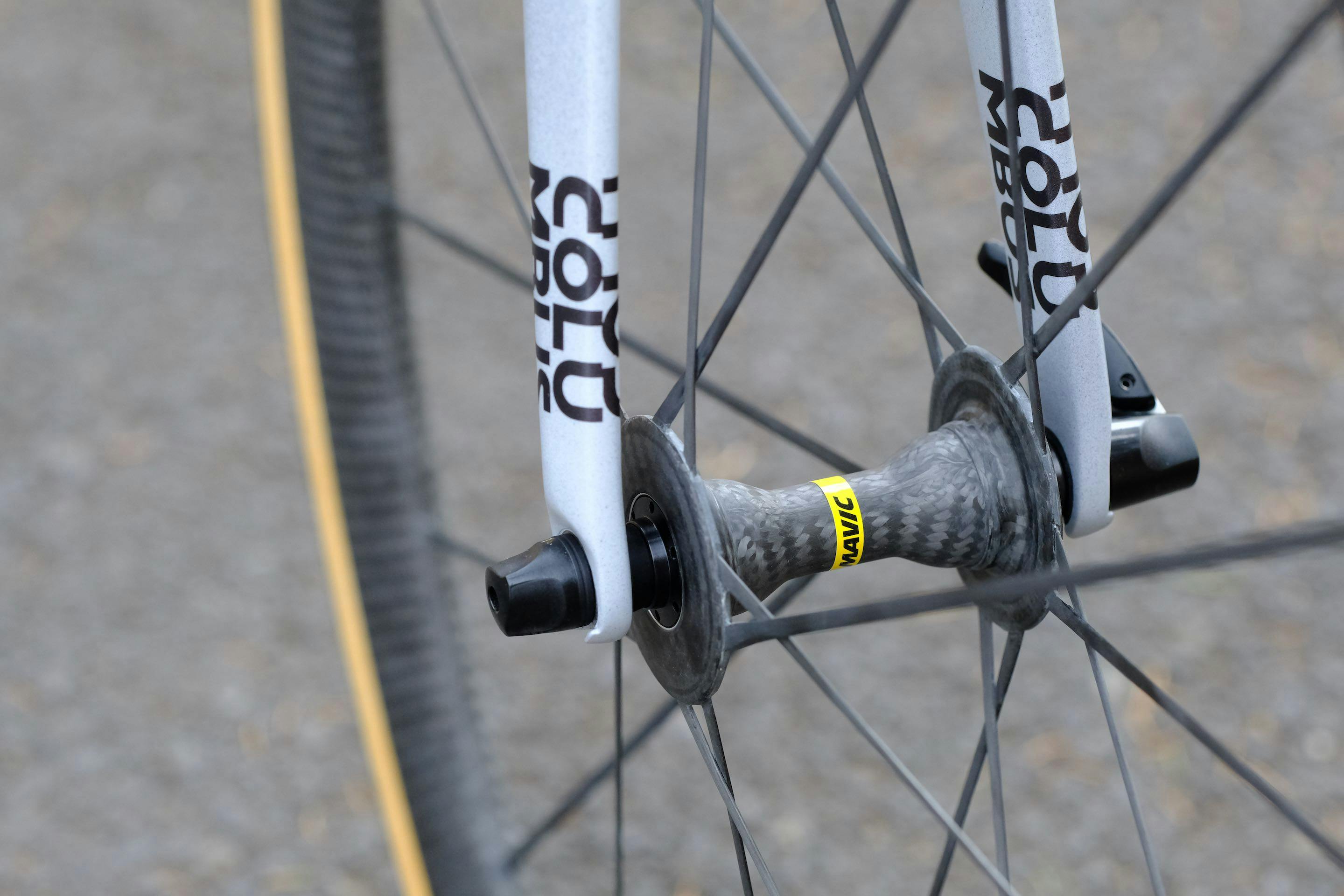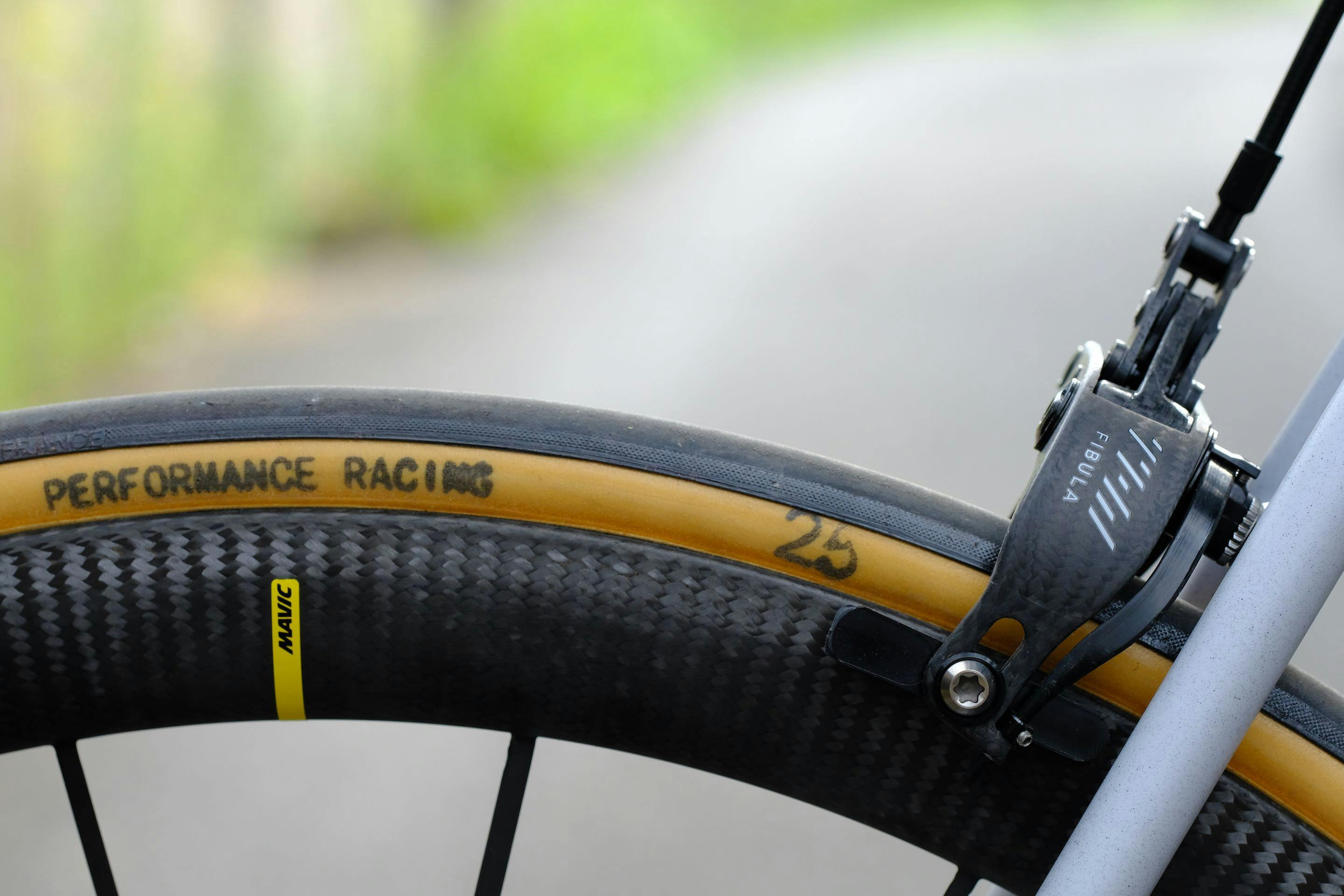 Sur ces roues ont été montées des boyaux FMB en soie naturelle, choix offrant légèreté et faible résistance au roulement.