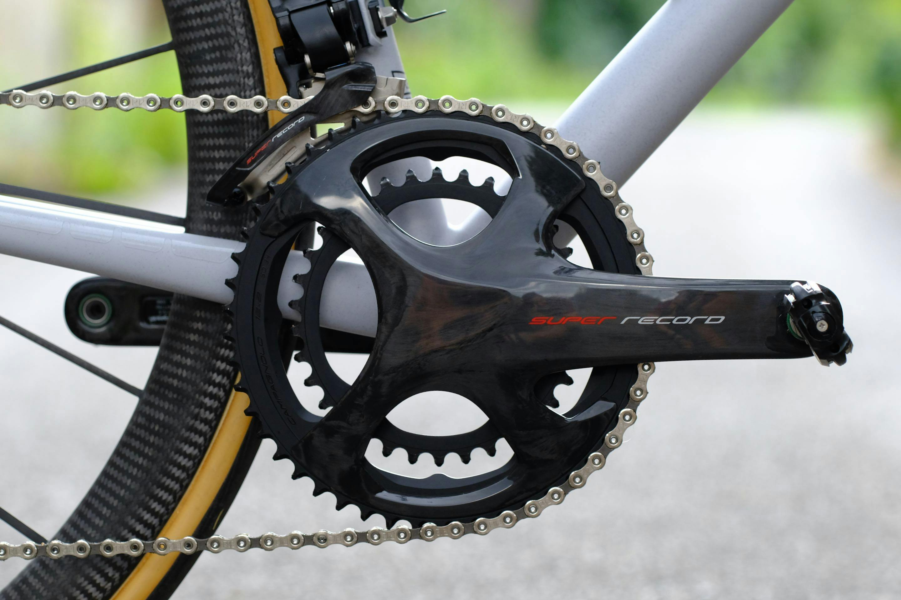 François nous a donné une carte blanche quasi-complète pour la réalisation de son vélo. Le choix de la transmission, un groupe électronique Super Record EPS provenant de chez Campagnolo, faisait partie de ses rares pré-requis.