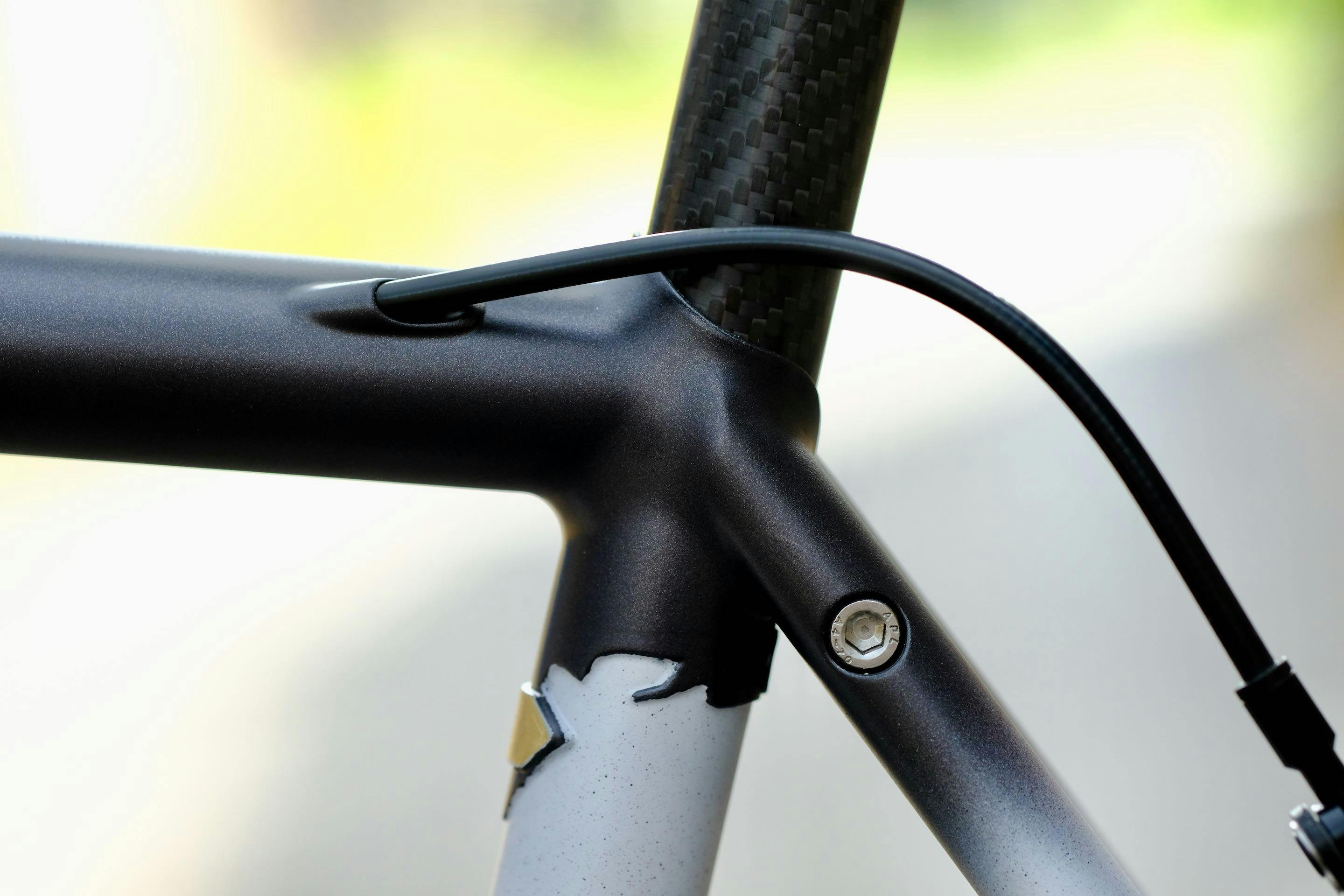 Un des maîtres mots de cette réalisation est l'intégration. Le serrage de selle est intégré aux haubans, le passage de câble de frein intégré au tube supérieur. Enfin, les cables EPS du groupe Campagnolo sont intégrés à l'intérieur des tubes.