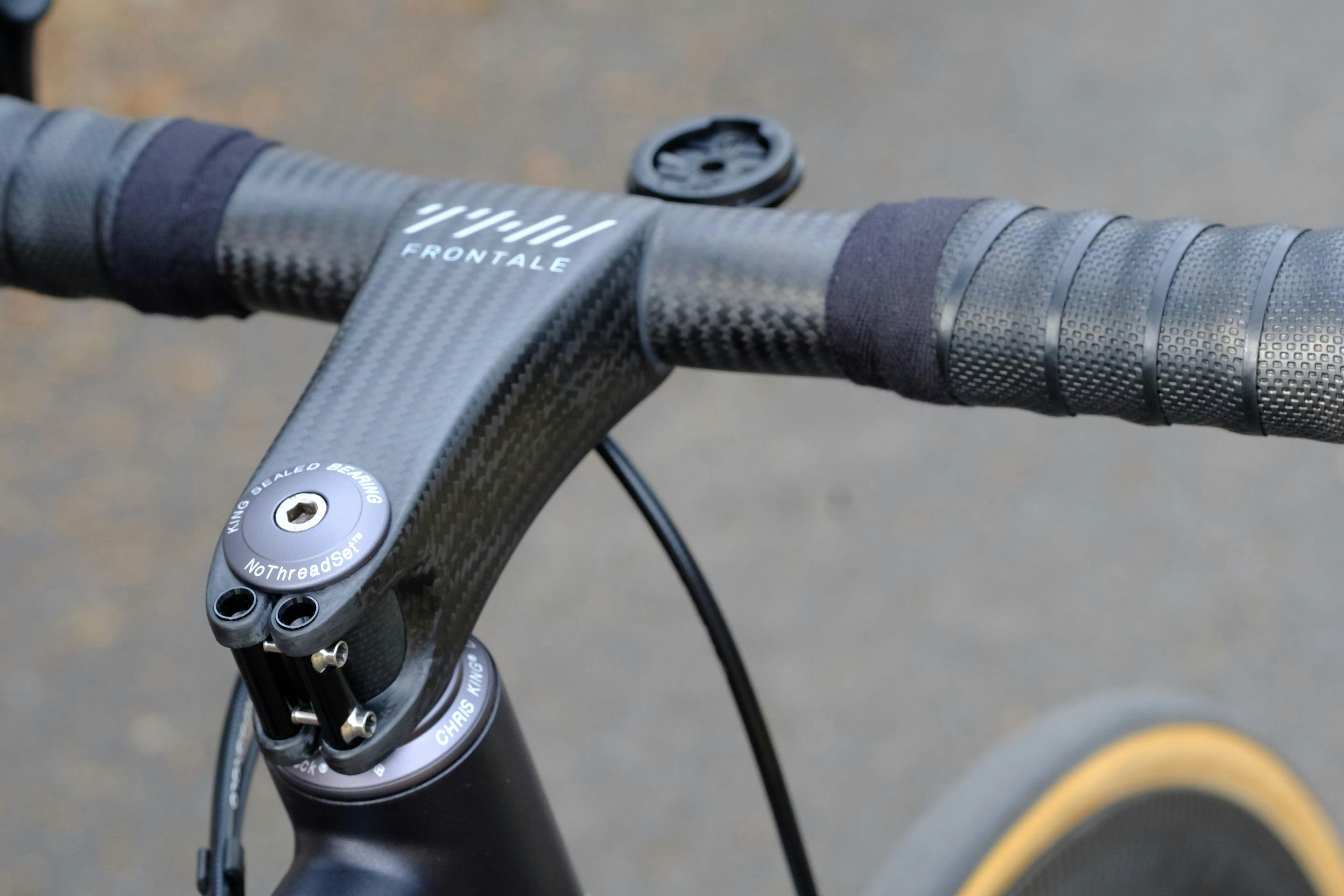 Les composants tels que l'ensemble potence/guidon, les étriers et la tige de selle ont été sélectionnés chez THM, fabricant proposant des pièces carbone d'excellente qualité, dans le but de réduire le poids global du vélo.