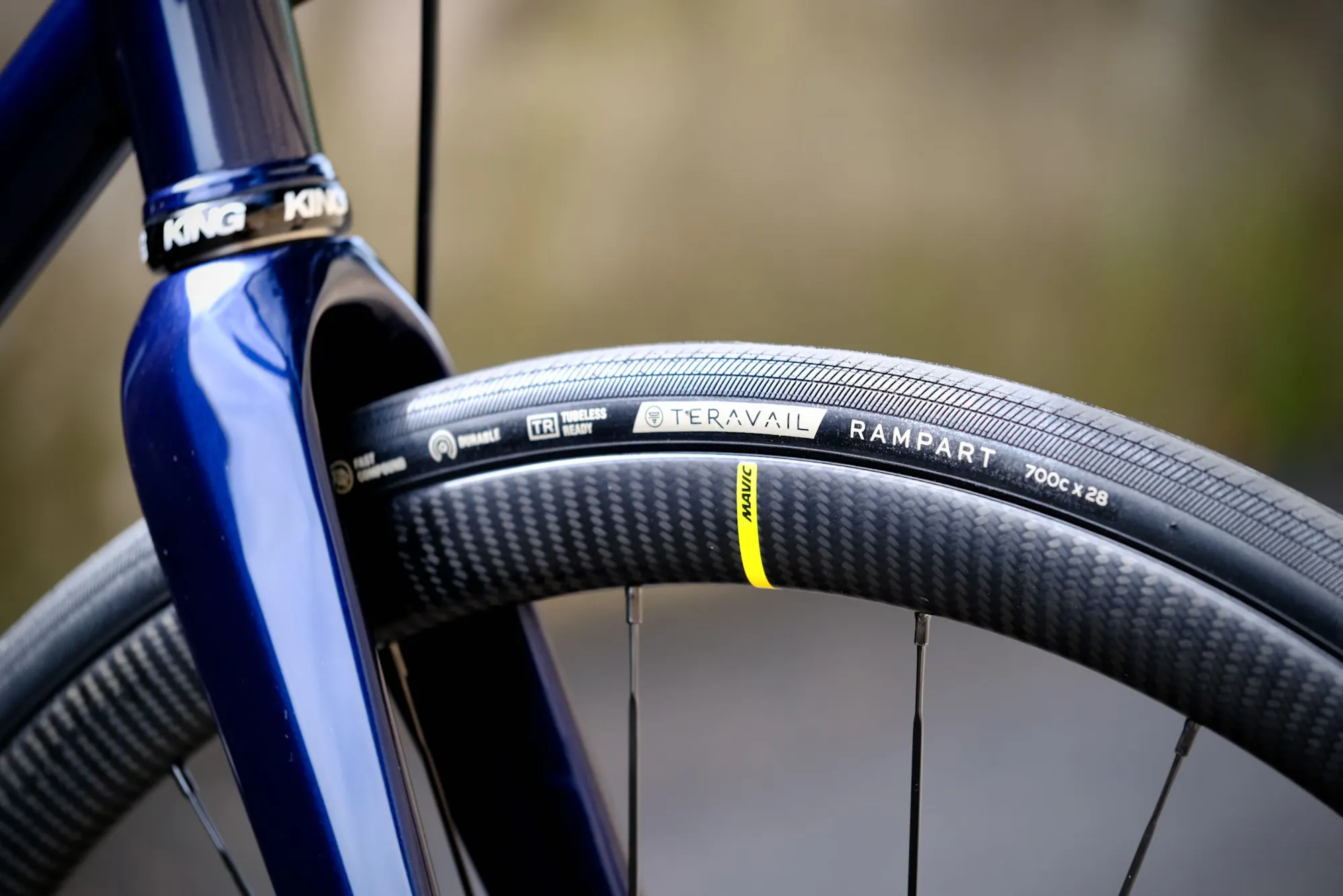 We've selected a carbon fork to accommodate tires up to 40mm. If the bike was delivered with particularly sporty 28mm tires, Frédéric will be able to fit wider tires, which will be more comfortable for very long distances.
