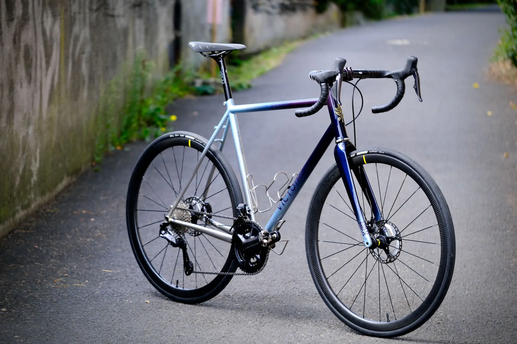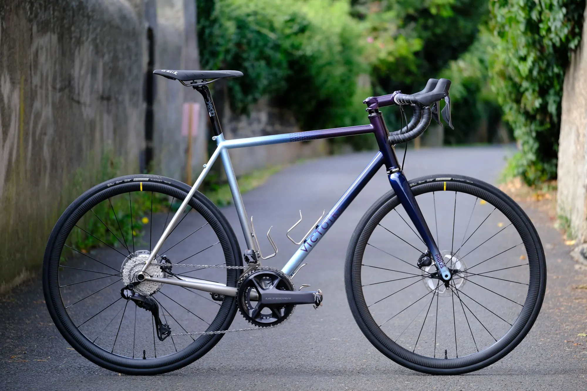 What a joy to see my project become reality! I was particularly impressed by the finesse and elegance of the bike compared to current models, which are often much more imposing, with very thick aero tubes for example. The real surprise for me was the paintwork. I had absolutely no idea what to expect, as I had opted for the surprise paint option, albeit with some indication of the colors. I was seduced by the gradation of colors and the fact that I could see the welds on the rear of the bike, reminding me of the handcrafted aspect of its manufacture. The purple tint on the front gives it a really elegant look! The stem in the same color adds a classy, sober touch to the whole. I was really impressed by the overall performance and robustness. Riding a steel frame gave me added confidence and comfort. What's more, the use of Di2 for shifting gears added an extra touch of comfort. But beyond these technical aspects, I truly feel that my bike has a soul (yes, I can already see the giggles from here...). I think every Victoire bike owner will understand this special connection. I know where it was made, by whom, I know it's unique, and all this helps to strengthen that bond. It's as if the bike were an integral part of me.