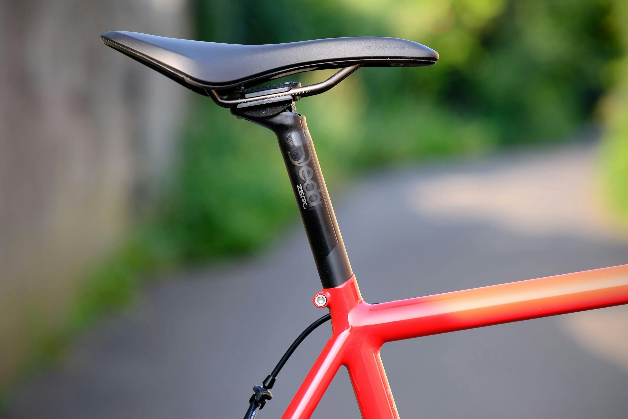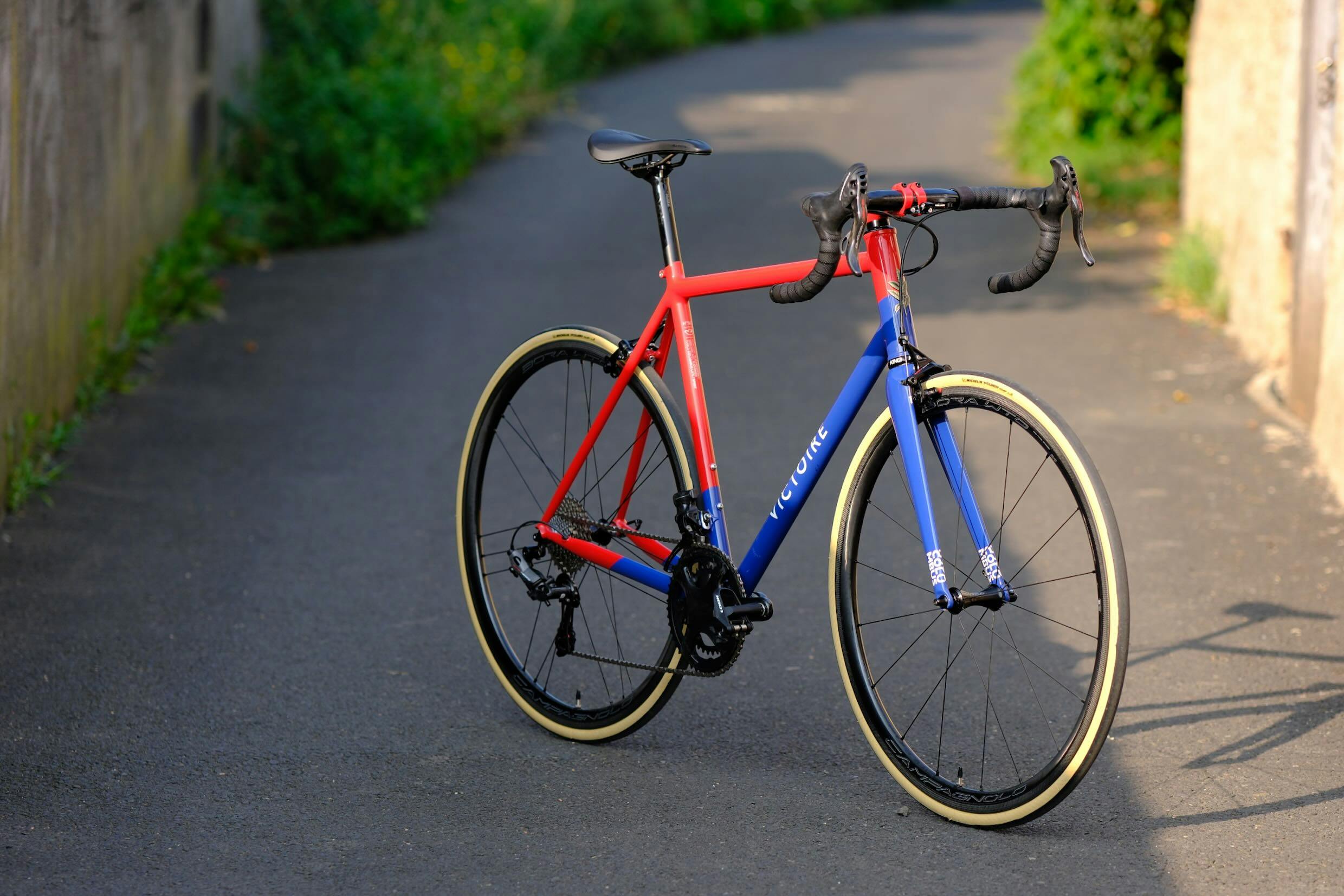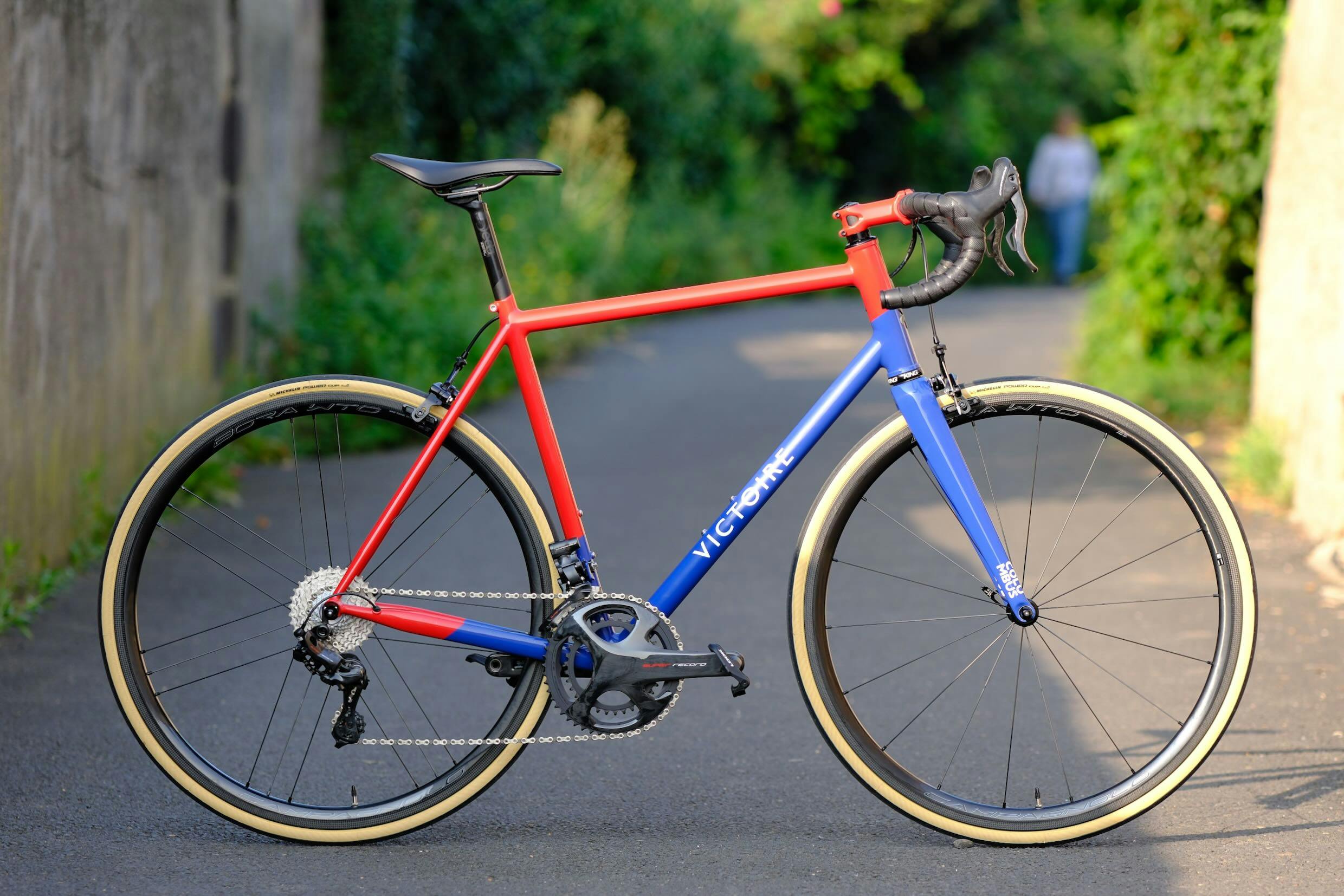 The red of the brake pads, the symbol of Campagnolo's Record range, discreetly recalls the bright red of the frame.