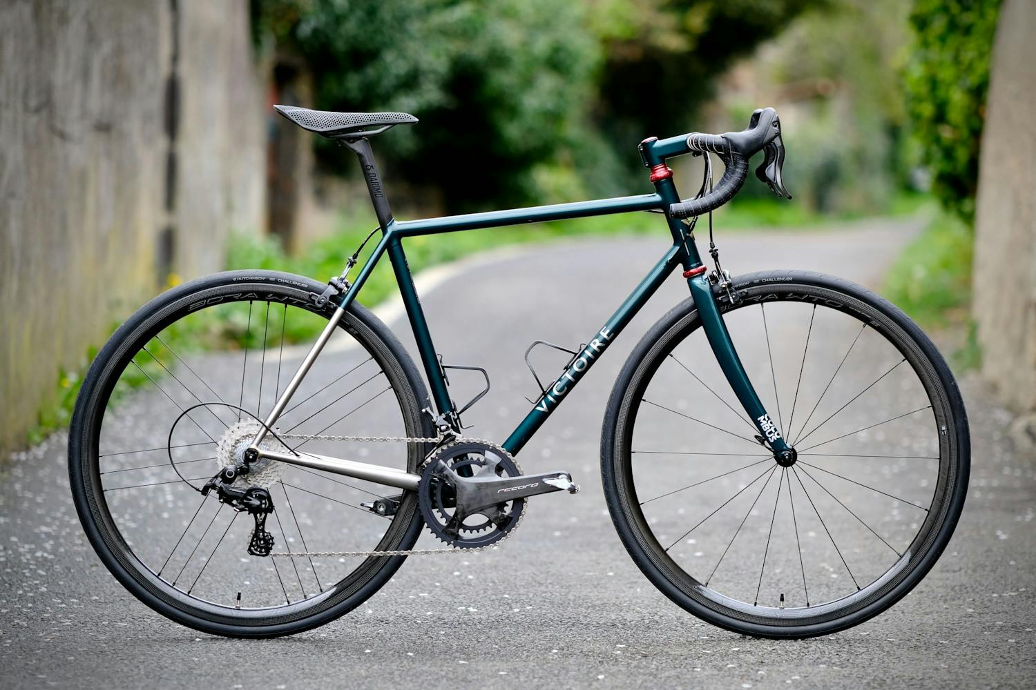 The red of the brake pads, the symbol of Campagnolo's Record range, discreetly recalls the bright red of the frame.