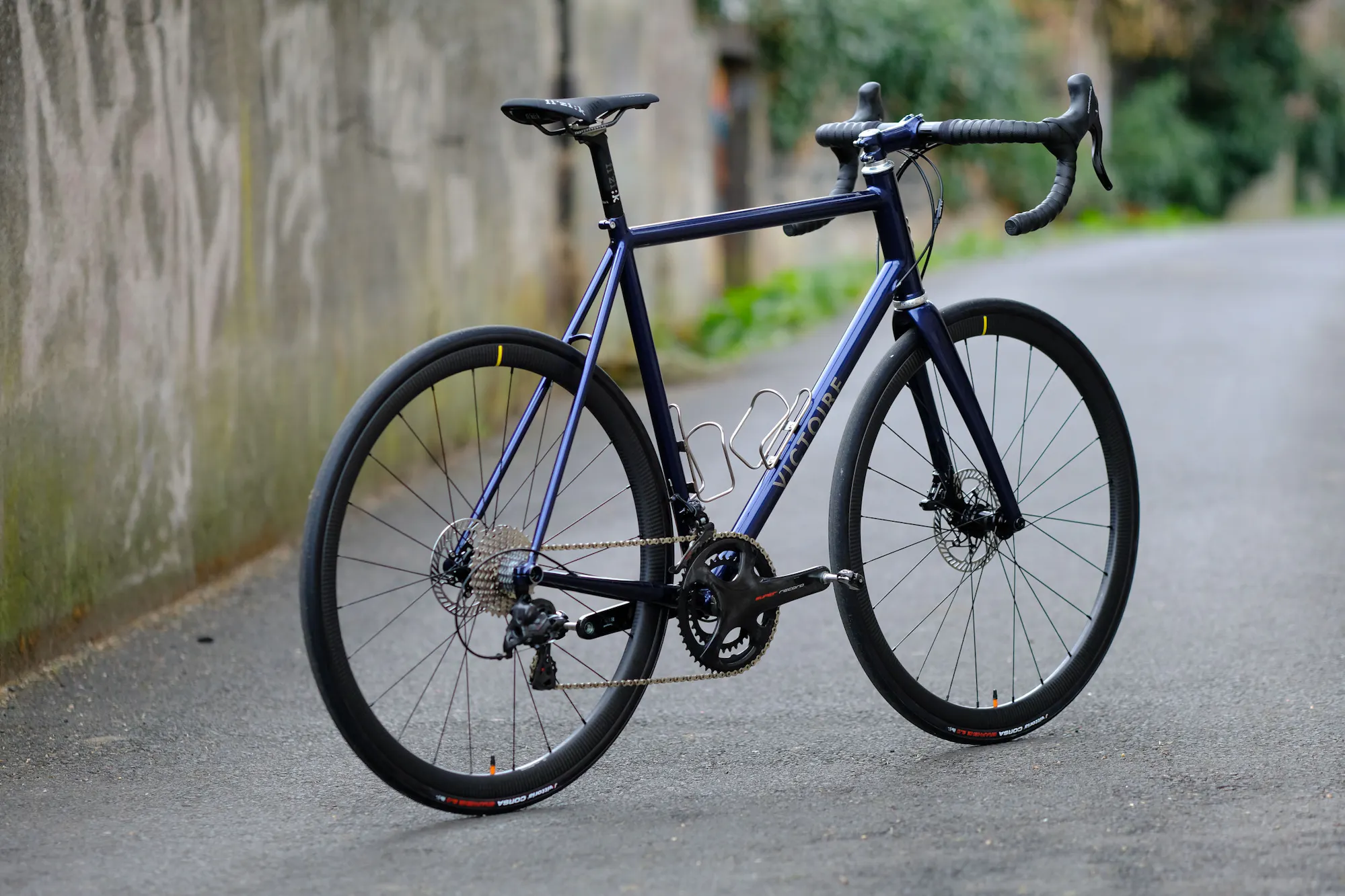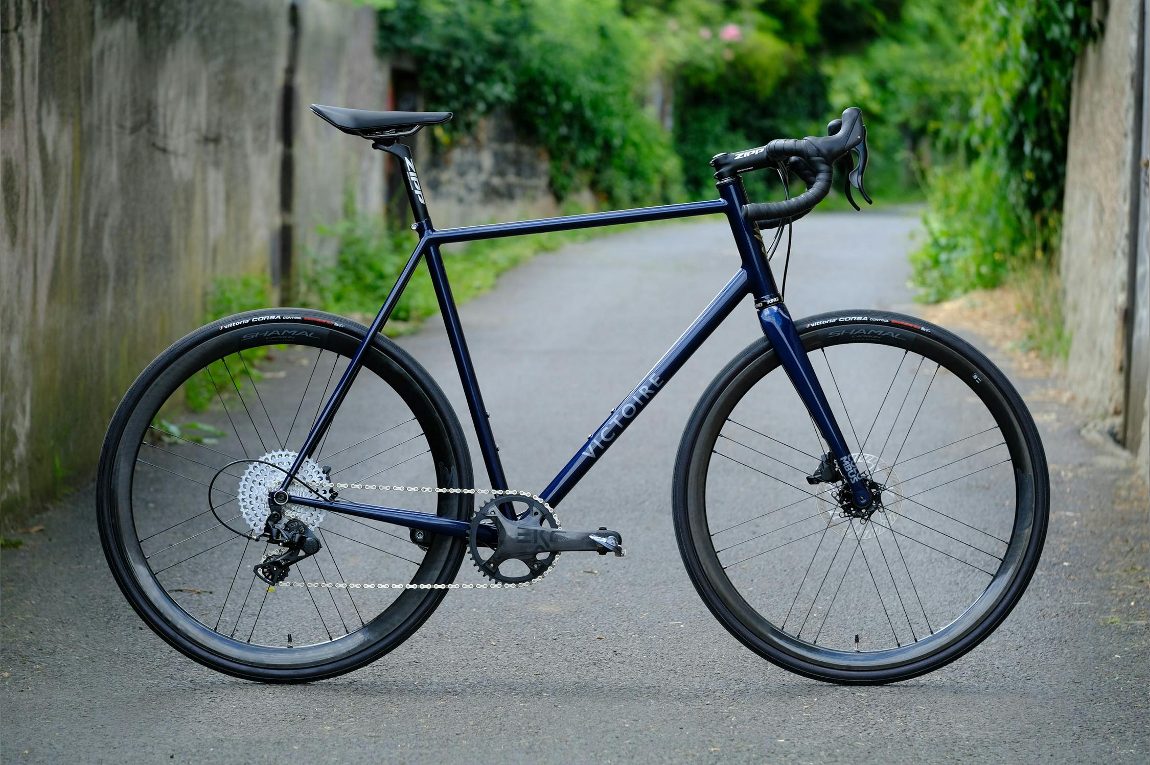 François, cycliste roulant sur asphalte, désirait une monture sobre et sans compromis. Nous avons réalisé ensemble un Victoire sportif en inox qui se concentre sur l'essentiel, archétype de notre vision du vélo de route moderne à disques.