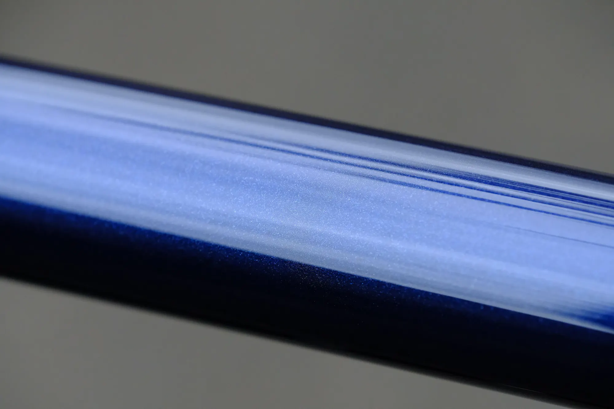 To paint the fork and stem of the bike in addition to the frame gives a coherent and harmonious result. Here, the stem is a Fizik R1 and the fork is an Enve road disc. Both have been sanded down by hand with the help of sanding paper. Then, they were primed, painted and finally protected by a clear coat.