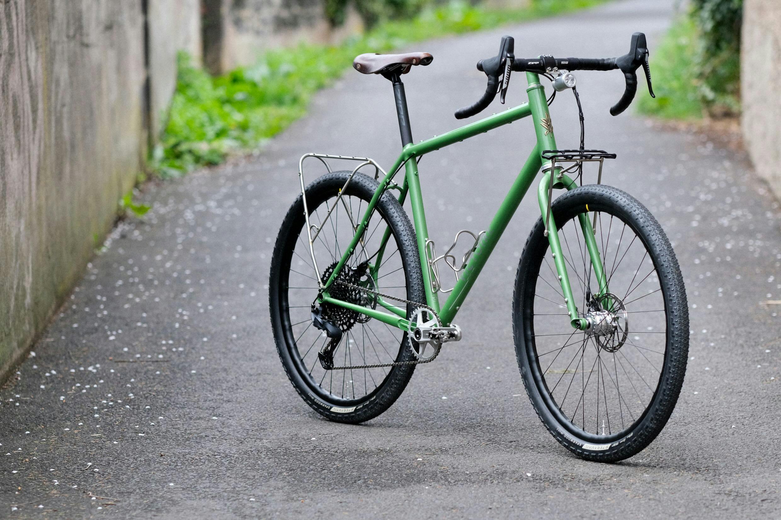 We used a rack developed for Julien's bike, the founder of Victoire. These front and rear racks are both lightweight and capable of carrying everything you need to be independent for several days: tent, sleeping bag, stove and clothes. The panniers are easy to assemble, and the way they're fitted and positioned means you can keep plenty of momentum on the bike: even when loaded, you can still climb a tough hill out of the saddle.