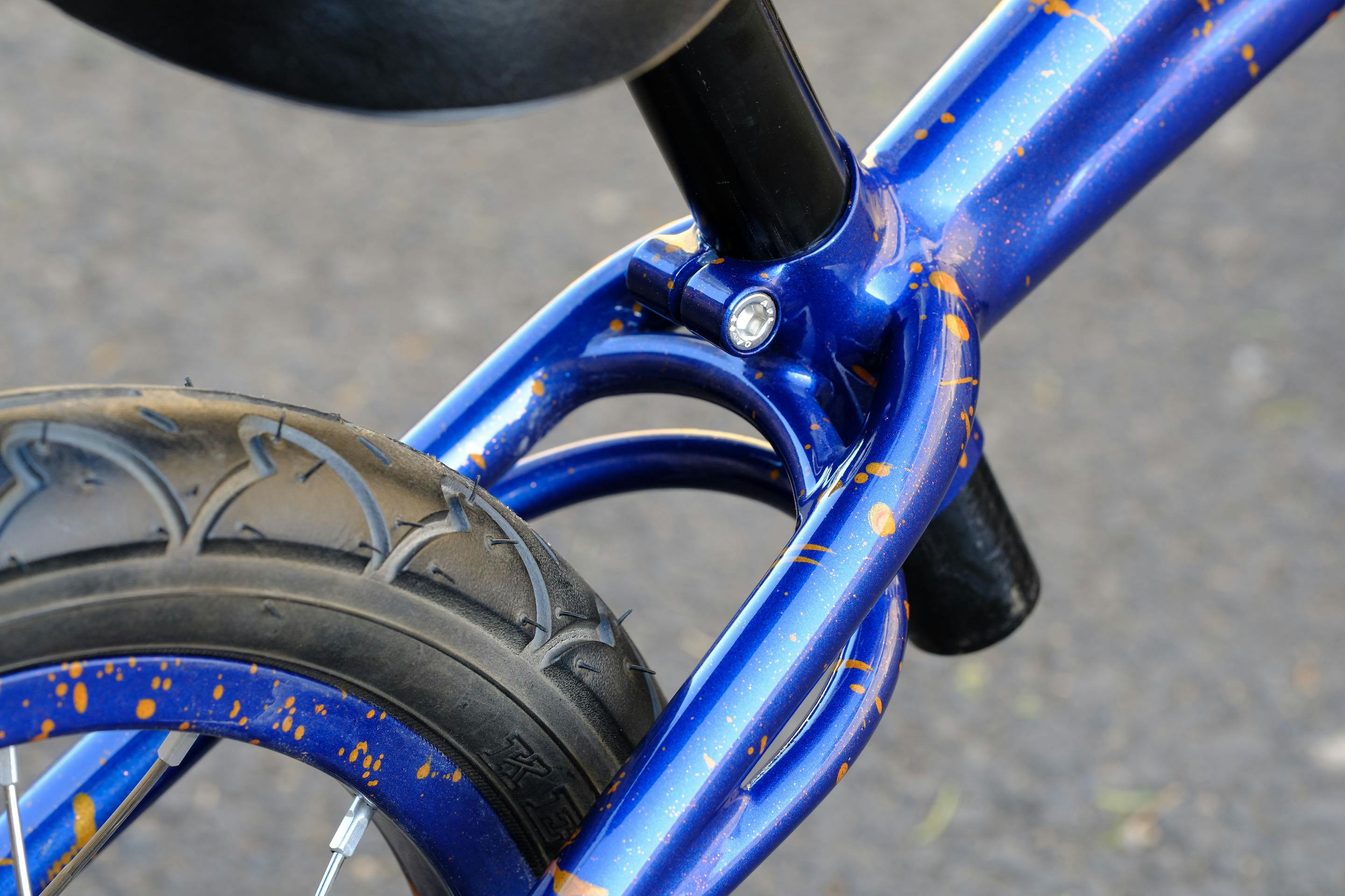 I really love the blue color with the brown splashes that looks like mud. Besides, I can turn my handlebar and do barspins, while I could not on my other balance bike because it was blocking, that's really cool !