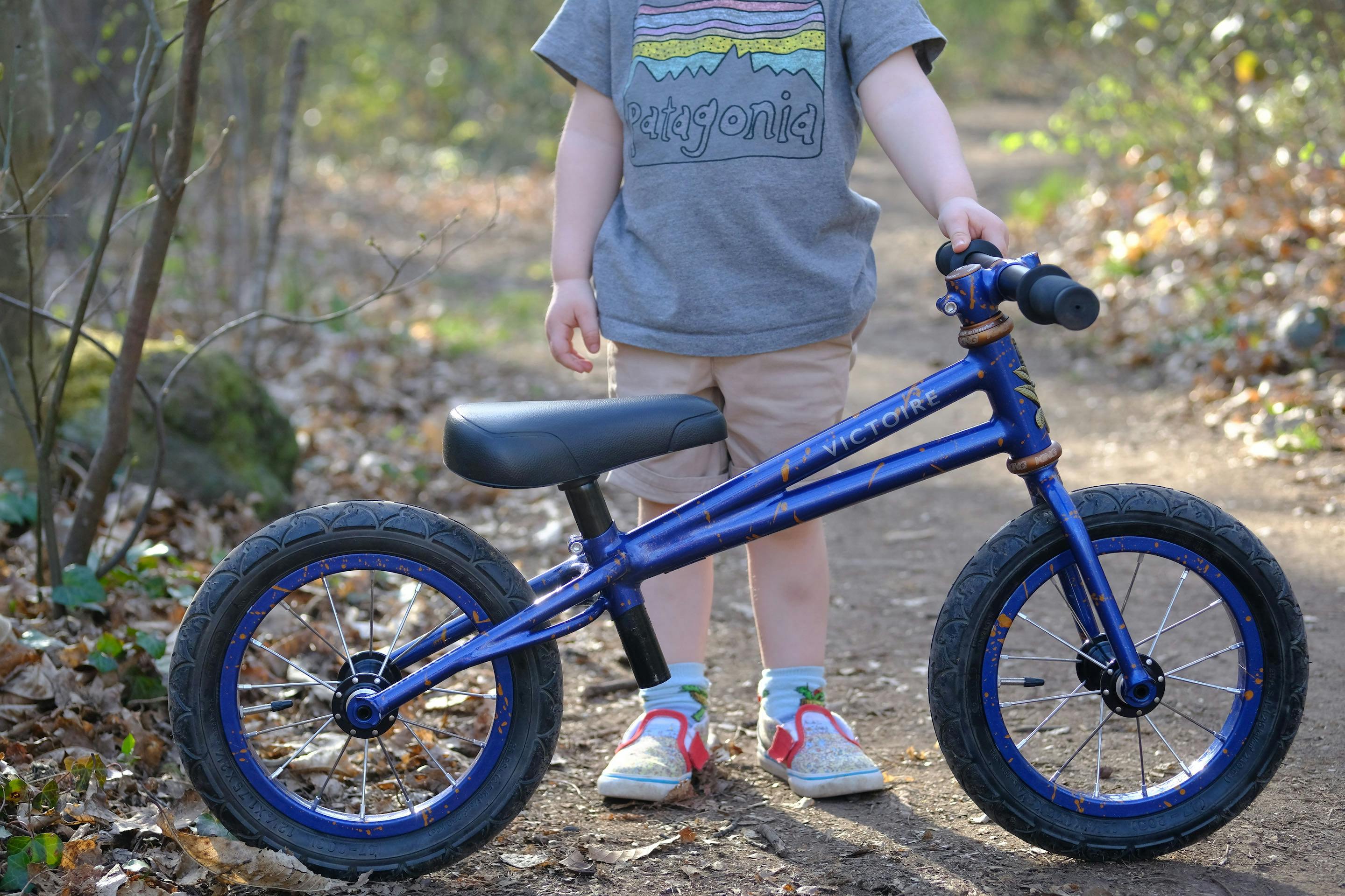 Unlike most balance bikes on the market, the Victoire N°484 uses 12'' wheels with actual clincher tires. These offer far more cushioning and grip than solid tires (which can be useful in the forest, when your only brake is your shoes).