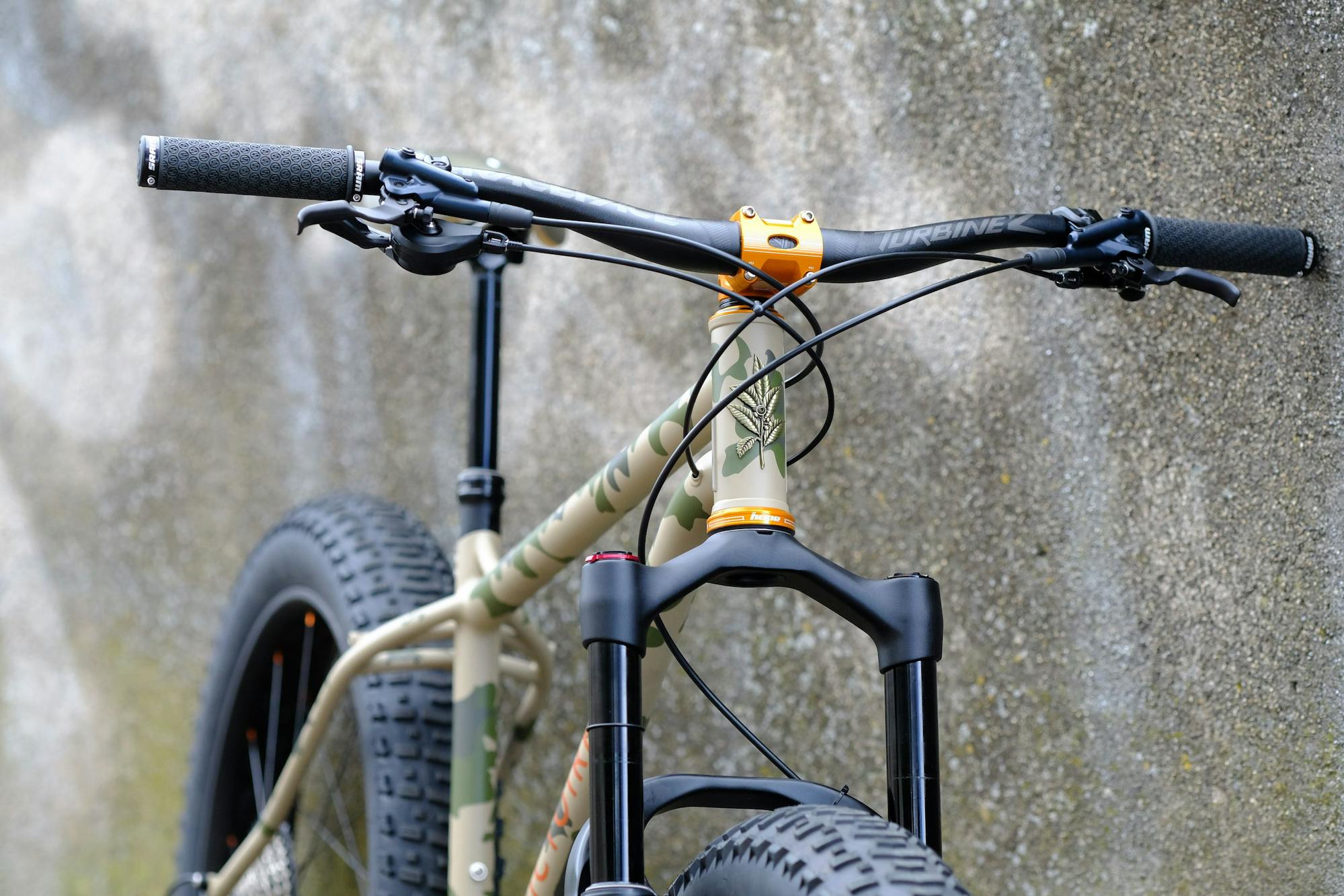 The DT Swiss rims are wearing 4" Teravail tires. Marco is also planning on using 4.8'' Surly tires for muddy, soft terrain.
