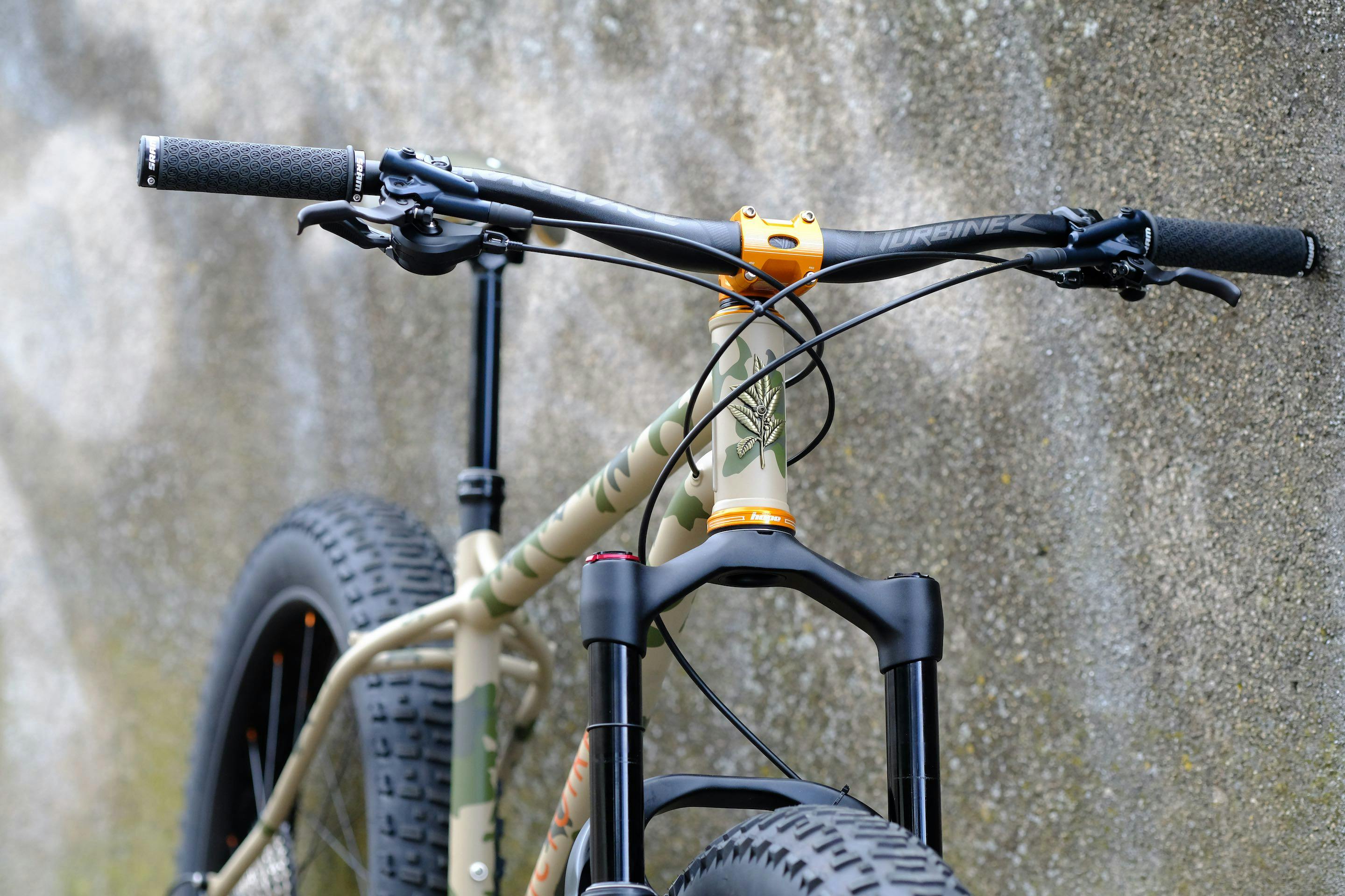 Marco wanted something very modular. The frame can clear 5'' wide wheels, allowing the use of all types of fat tires : for road, snow, sand, mud and rocky terrains.