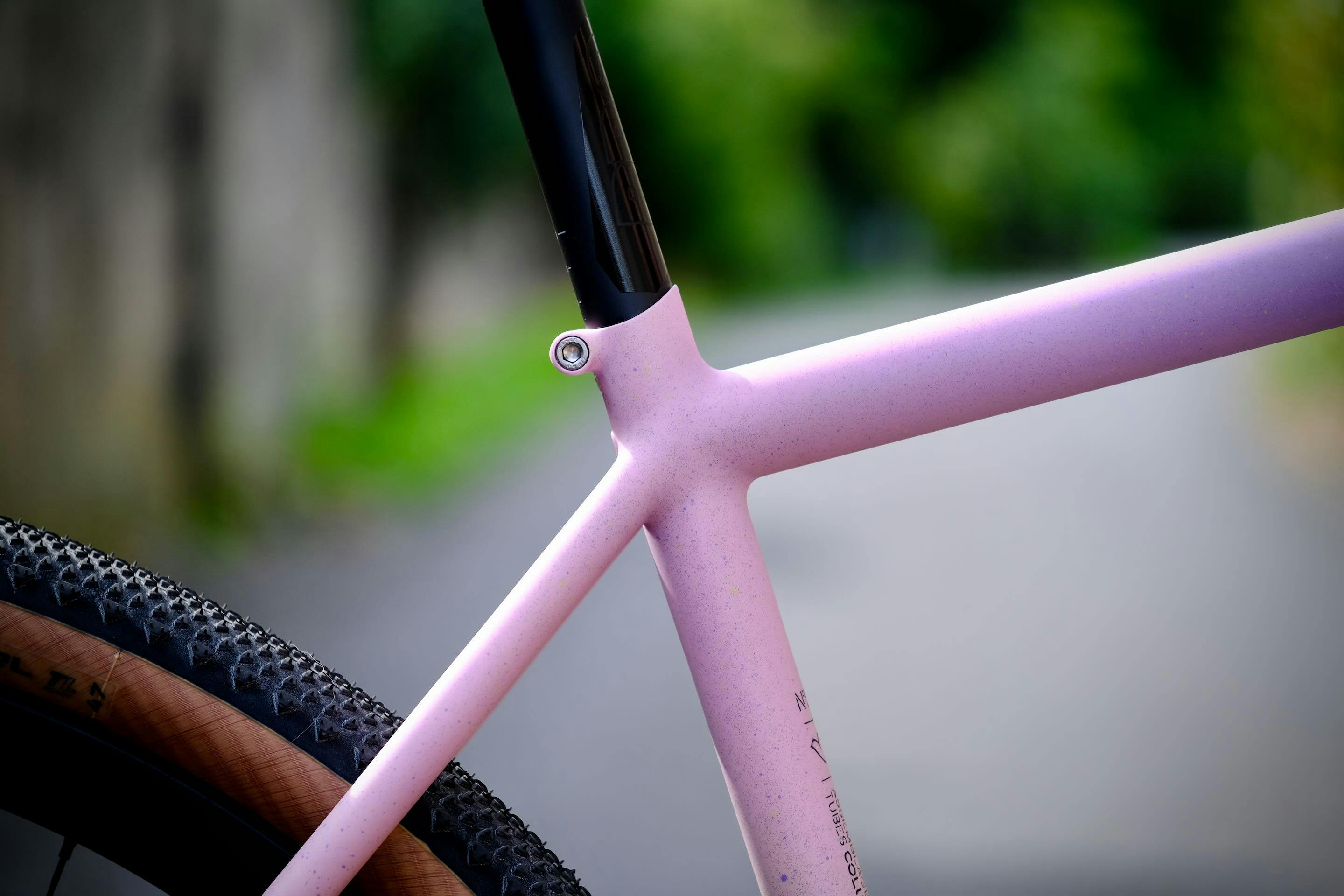 The frame configuration is the one we develop for most of our gravels: 44mm bearings, BSA bottom bracket, standard flatmount brakes and Columbus Life and Zona tubes.