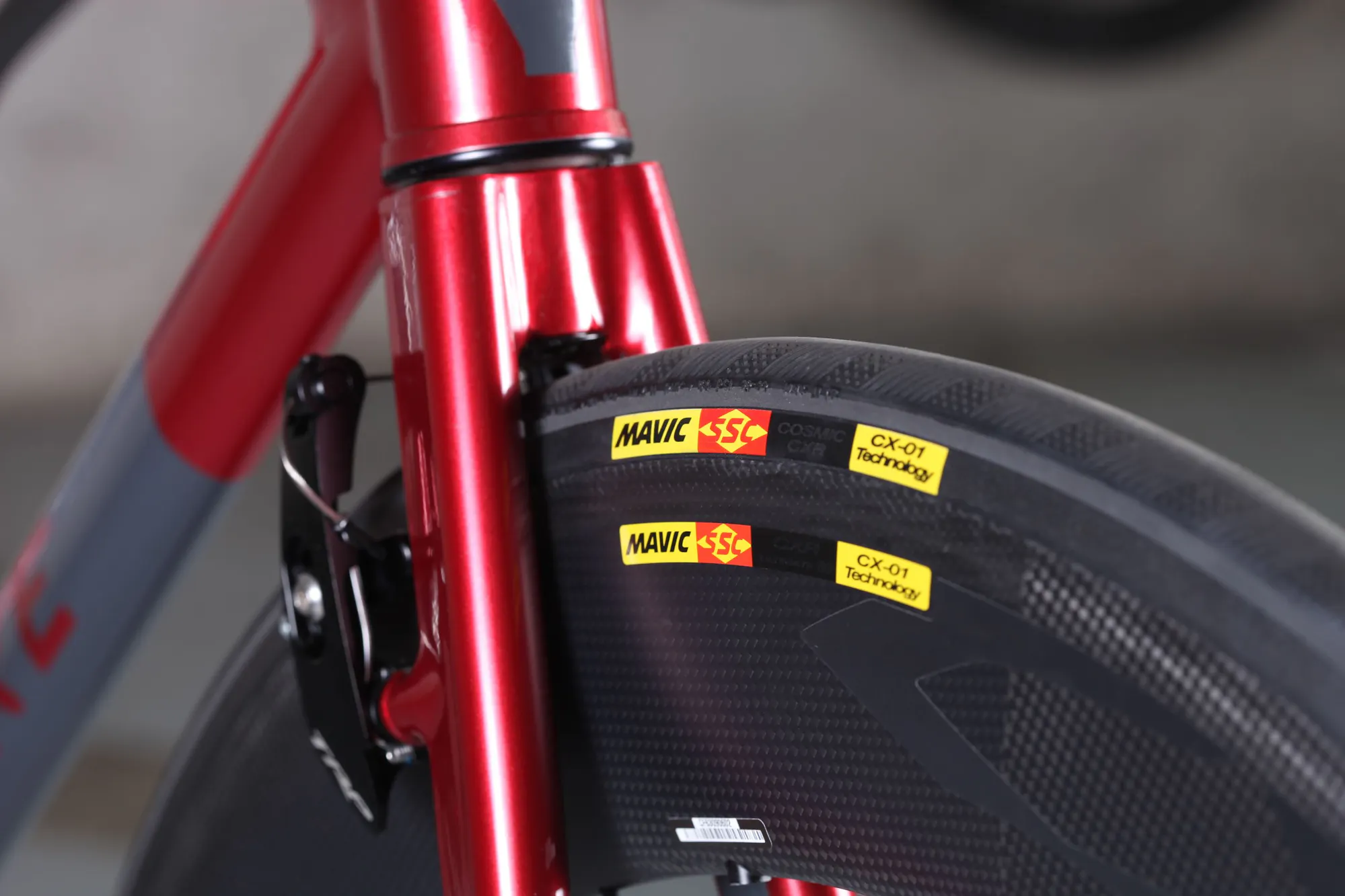 Nous avons reçu pour ce projet le soutien de Mavic. Nous sommes très heureux d’avoir pu collaborer avec la célèbre marque française, et de pouvoir désormais proposer l’ensemble de leur gamme sur les vélos sur-mesure Victoire. La marque au sang jaune a immédiatement adhéré à ce projet mêlant innovation, performance et artisanat français. Basées sur le modèle CXR Ultimate 80, les roues ont été spécialement rayonnées par le Service Course Mavic pour adapter un corps de roue libre XD acceptant la cassette SRAM 10-42. La roue arrière est ainsi montée avec un moyeu et des rayons dédiés à ce projet.