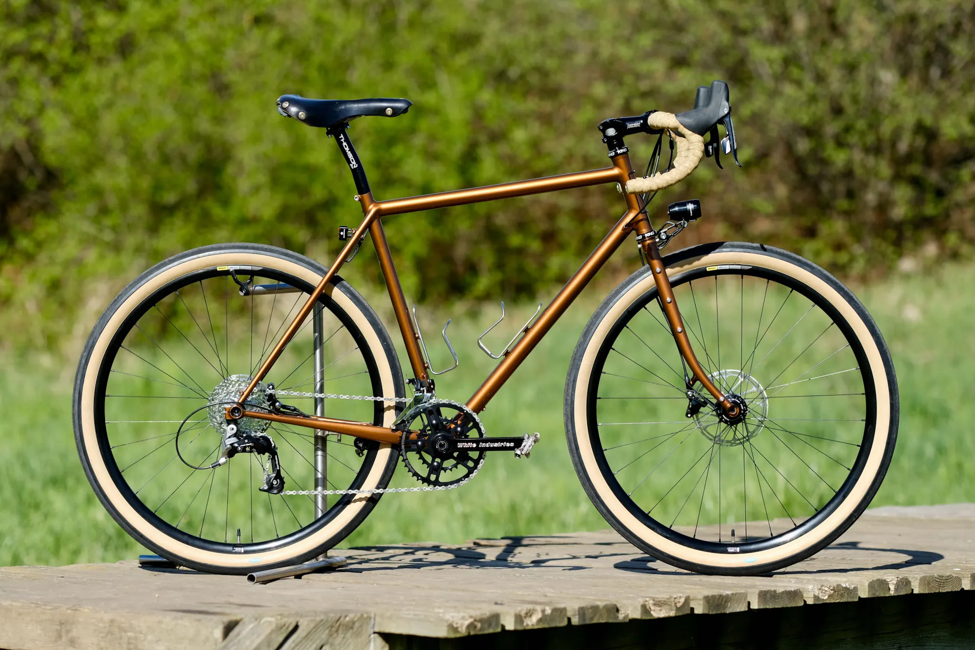 Habitué au triple plateau, le choix du rapport de la transmisison a été un élement important dans ce projet. White Industries et son pédalier R30 nous permet de moduler la taille de plateau pour obtenir des étagements non standards. Ici Téo a fait ce choix avec des plateaux en 46x26 et une cassette 11x32 pour envisager toutes les situations qui se présenteront à lui.
