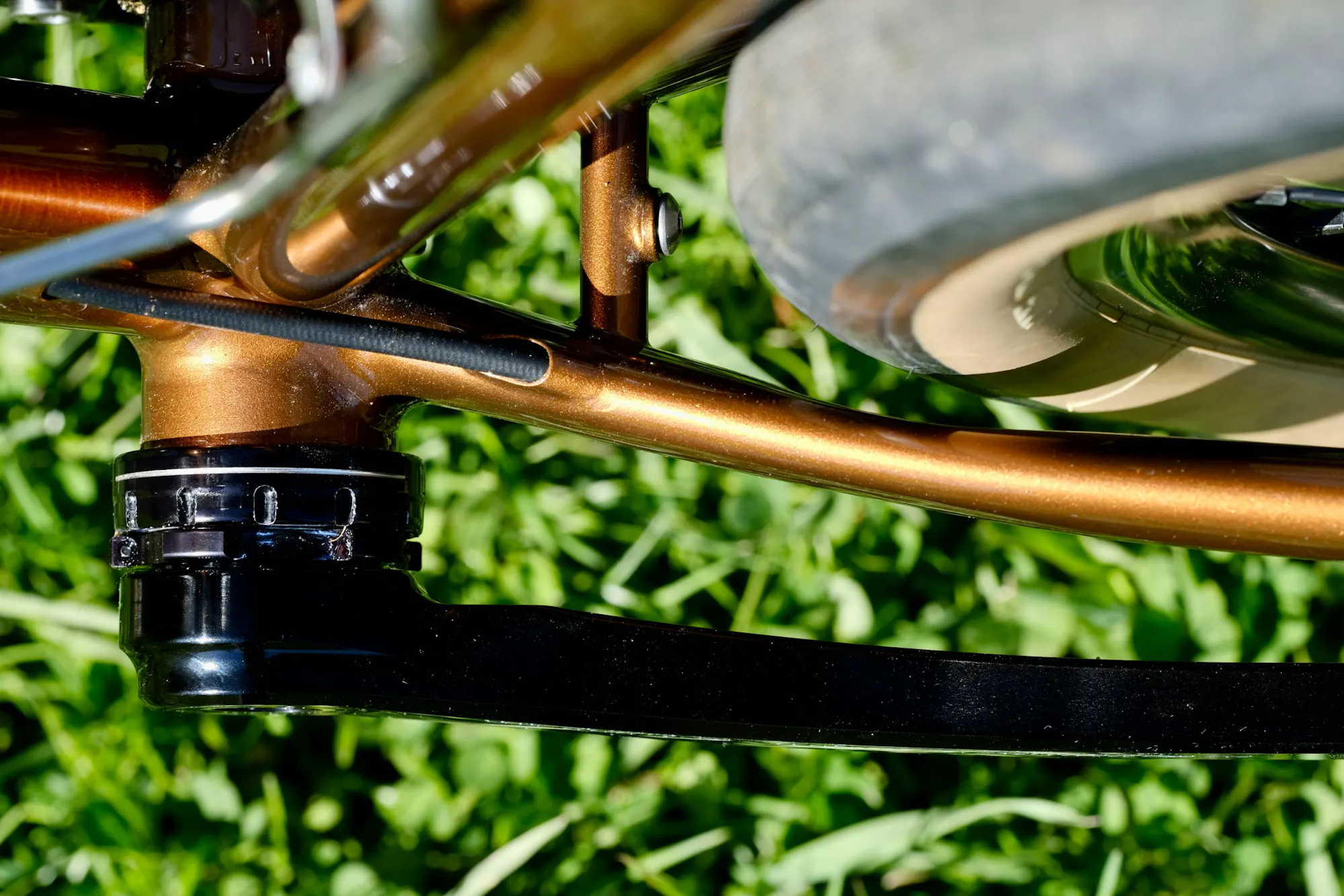 Cela lui permet un net gain de confort grâce aux pneus ballon d'une largeur de 48mm mais aussi de supprimer le phénomène d'overlap et obtenir un vélo plus homogène.