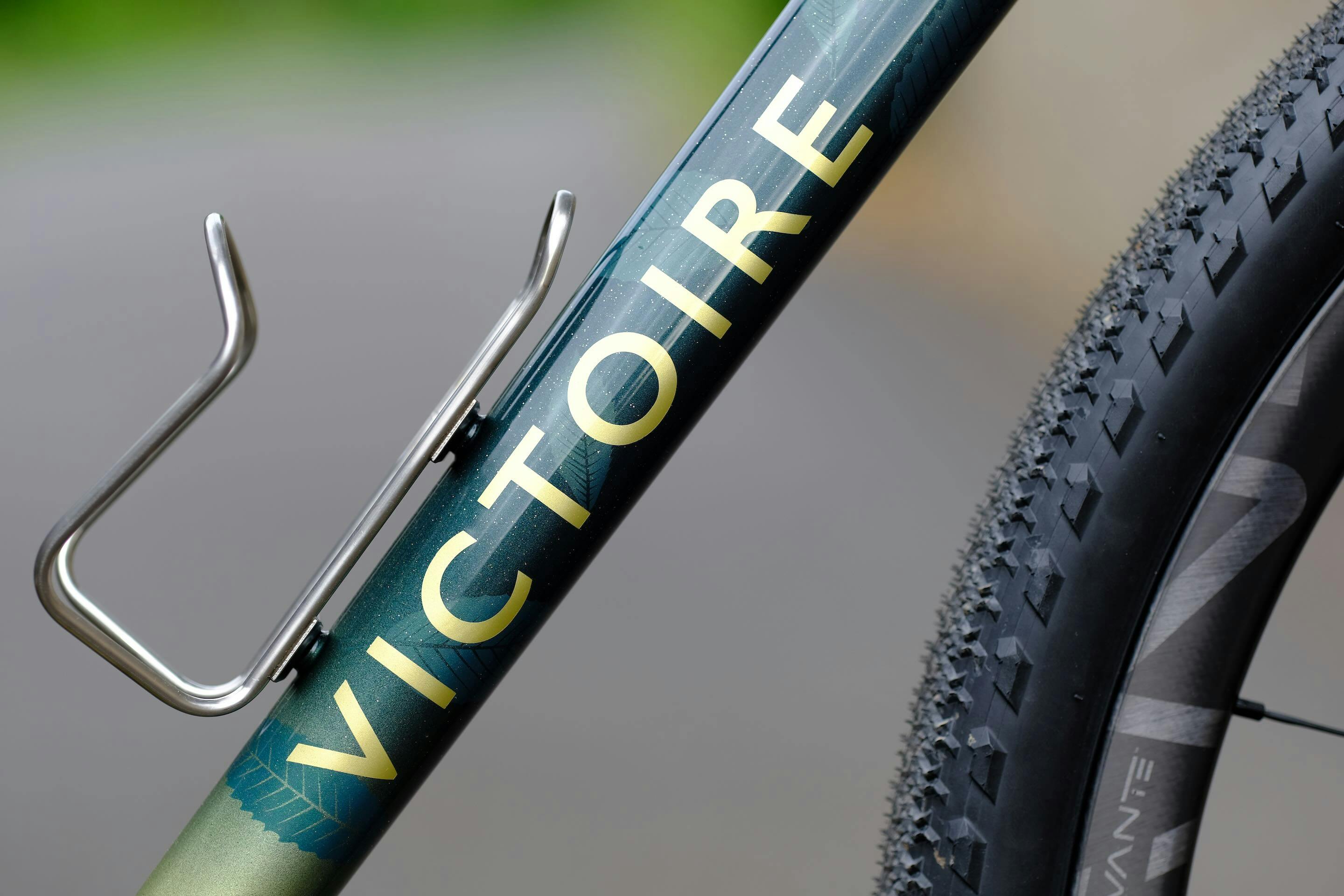 Comme toujours chez Victoire, tous les éléments en contact avec des pièces mécaniques sont en inox : les coupelles de direction, le boitier de pédalier, le collier de selle, les passages internes des gaines, la patte de cadre et même les plots de fixation du frein arrière au standard flatmount. Ces surfaces de contact sont ensuite polies à la main pour s'assurer d'un montage et réglage parfait, et ne pas détériorer la peinture.