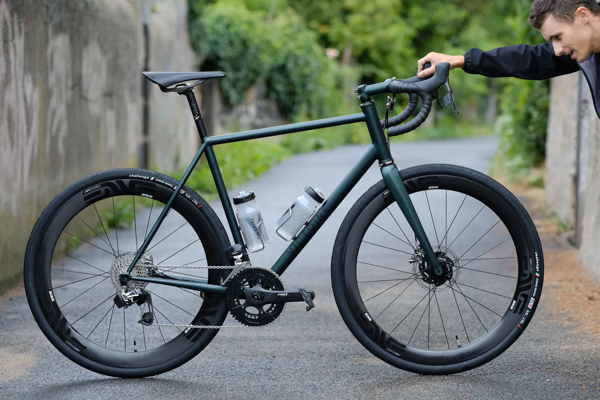 Valéry vit à Bâle, en Suisse. Il nous a contacté pour un vélo sportif et polyvalent qui lui permettrait d’enchainer les sorties rapides mais aussi de partir explorer les chemins aux alentours de son domicile. La prothèse de main gauche de Valéry ne lui permet pas d’utiliser une commande avant de frein ou de dérailleur. Nous avons donc dû innover en installant une double commande sur la manette droite, pour que Valéry puisse utiliser son vélo comme nos autres clients.