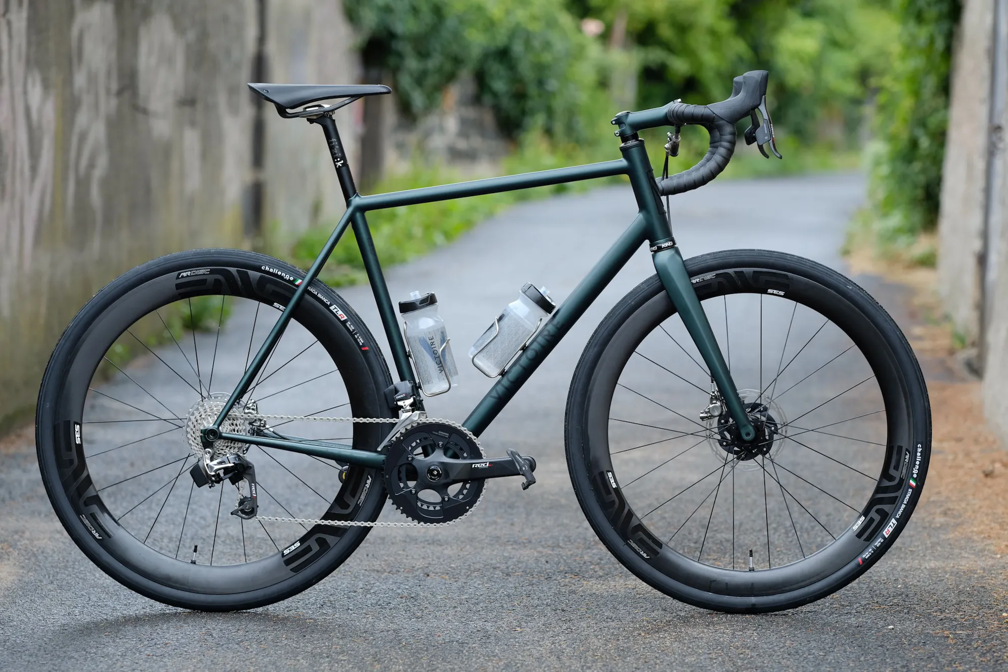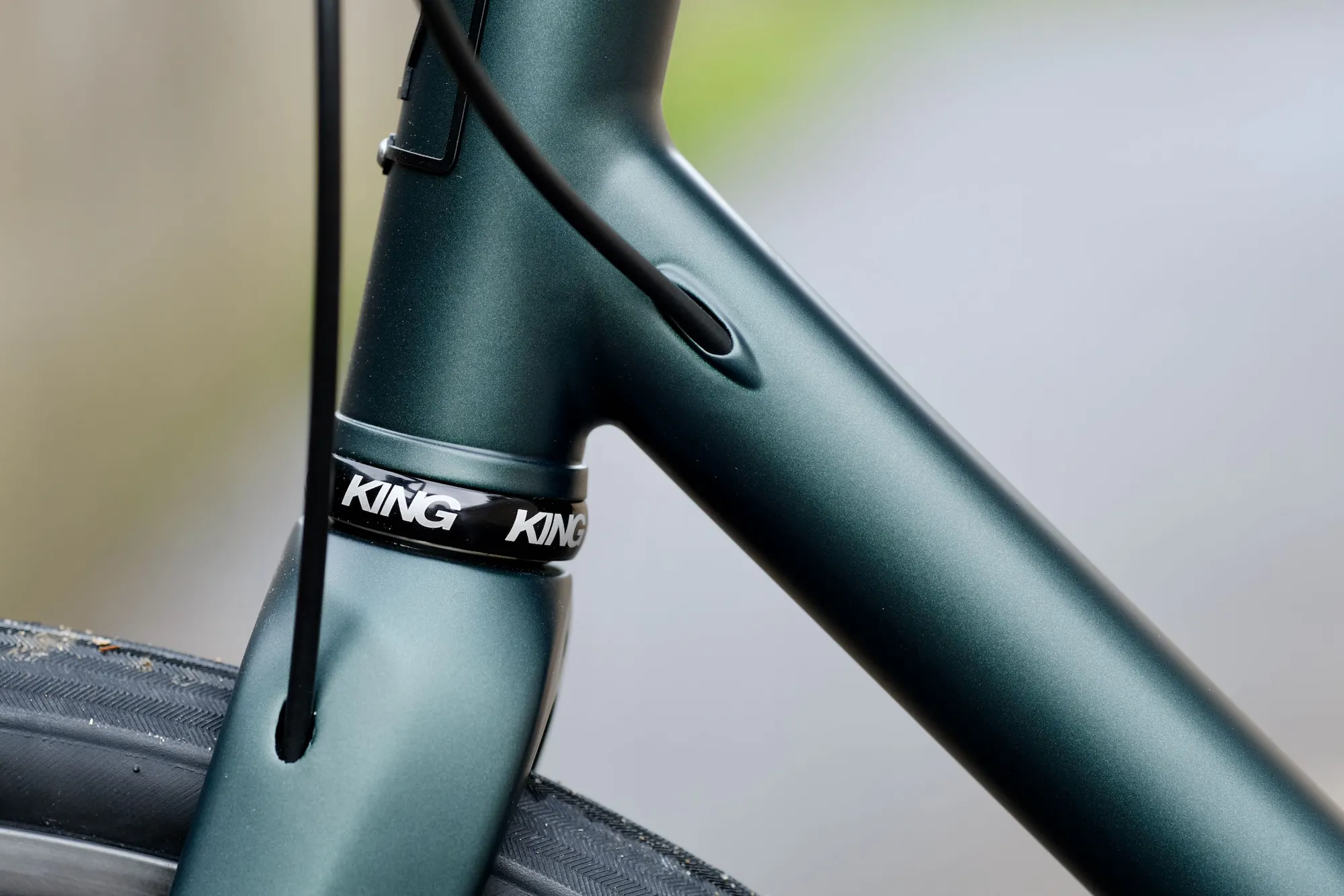 Valéry a fait confiance à Chris King pour les moyeux, jeux de direction et roulements. La potence, guidon et tige de selles proviennent eux de chez Fizik, et les deux premiers éléments ont une peinture assortie au cadre.