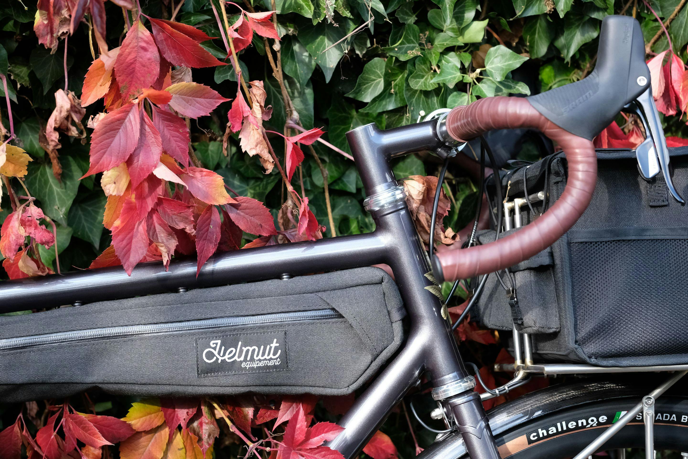 Le tube supérieur et le tube de selle du Victoire n°490 ont été équipés d'oeillets qui permettent de fixer la sacoche de cadre Helmut Equipement.
