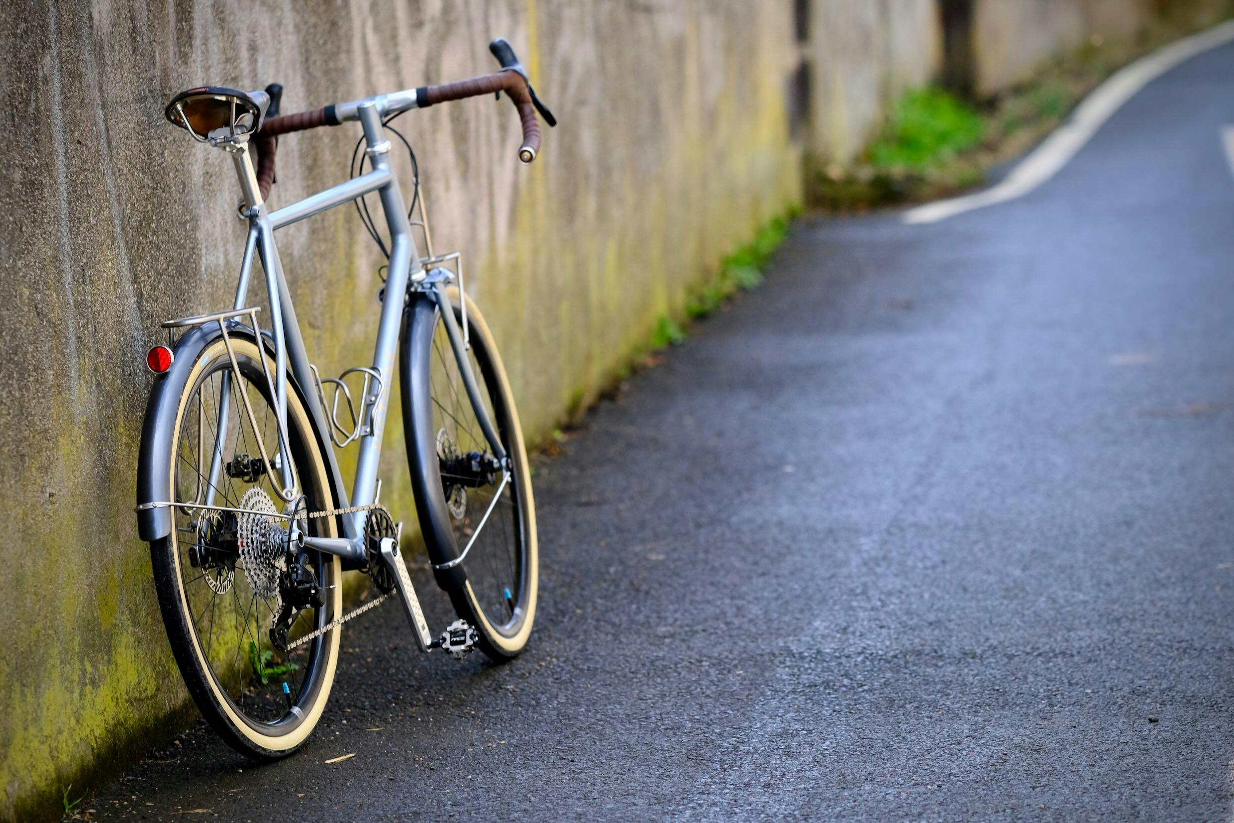 Pour compléter ce mariage de modernisme et de classicisme, les pneus Loup Loup Pass de chez René Herse et la sacoche Berthoud se sont imposés comme des choix évidents.
