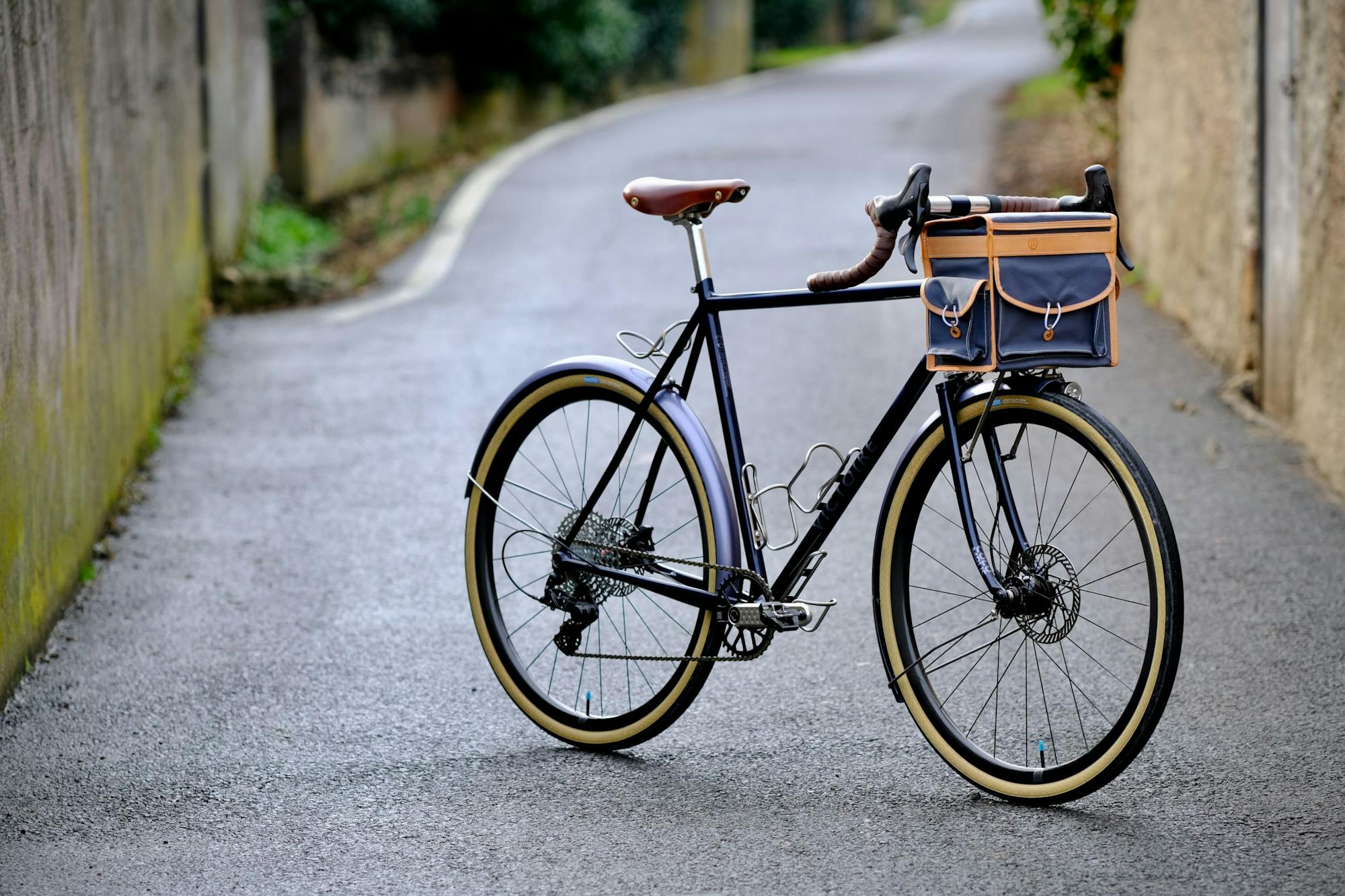 Pour ce projet, nous avons suivi un cahier des charges fidèle à la grande époque des randonneuses françaises sorties des ateliers de René Herse, Jo Routens ou bien Alex Singer. Les roues sont au format 650x38, le porte-paquet avant s'installe sur un décaleur.