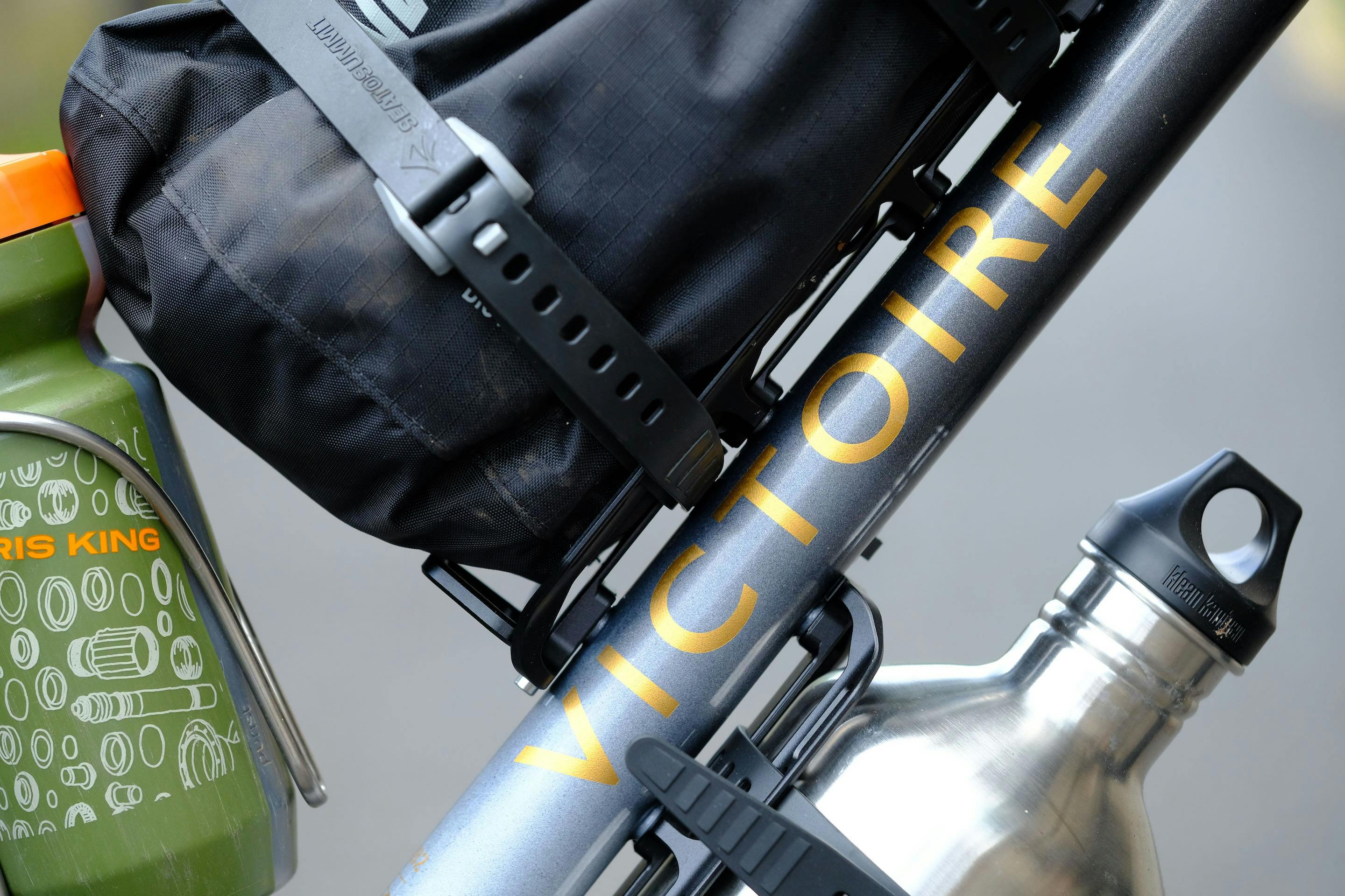 A l'origine, son Distance ne disposait pas d'oeillets de fixation autres que ceux des porte-bidons. Le défi a donc été de retravailler le cadre, mais aussi imaginer des solutions annexes afin de permettre l'arrimage de sacoches.