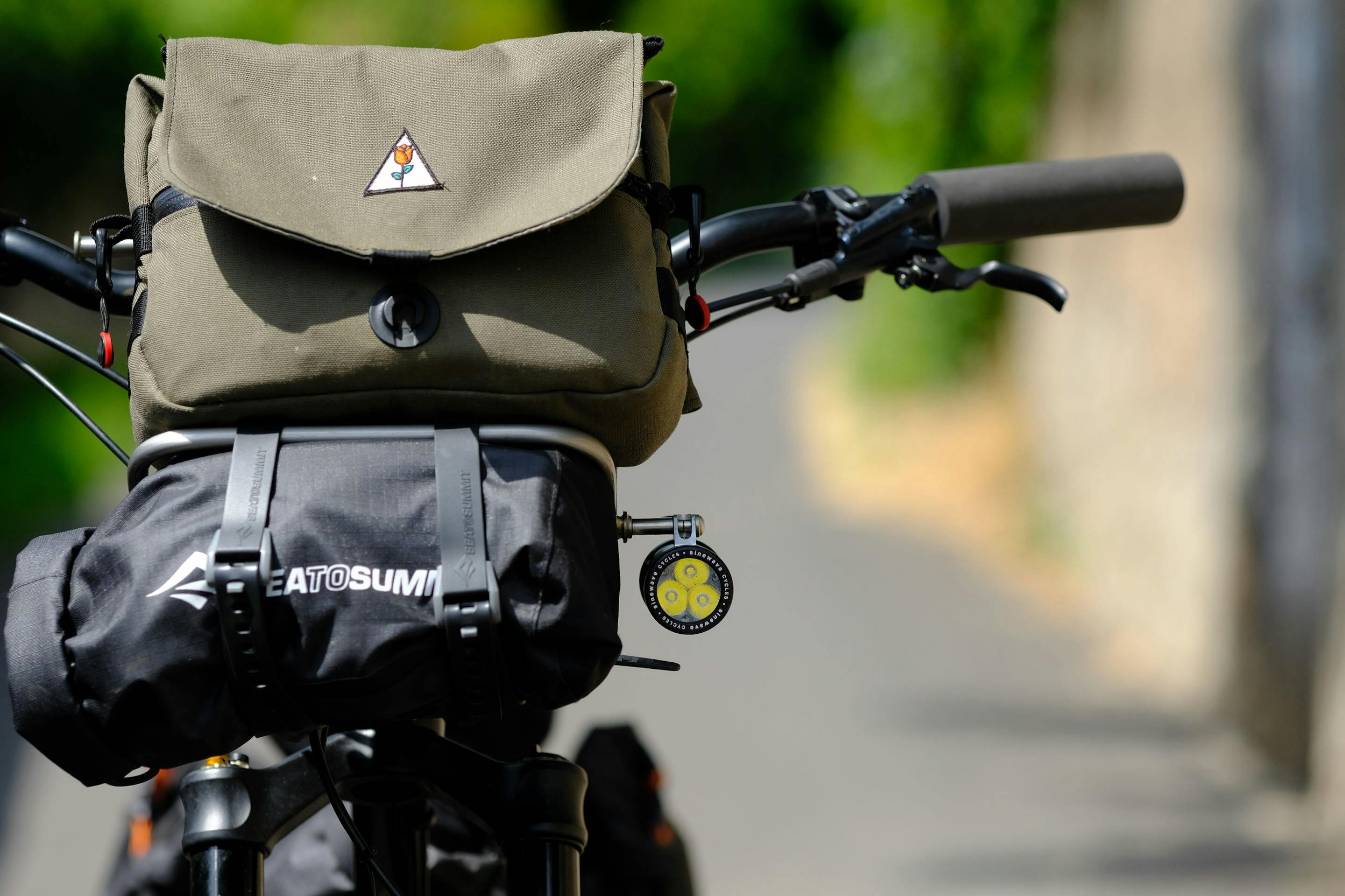 Cette configuration permet de moduler rapidement sa charge. La cage Tailfin permet de sangler une sacoche étanche comme celle visible en photo, mais on peux aussi imaginer y placer une petite tente, une veste ou même une bouteille d'eau, selon les besoins du moment.
