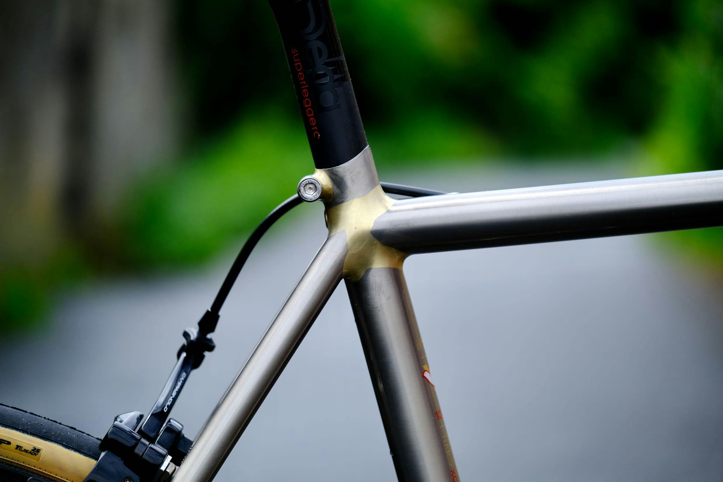 Cédric souhaitait un vélo en inox. Pour cette machine exceptionnelle, nous avons utilisé un des rares jeu de tubes Colombus XCr de la série limitée fabriquée pour nos 10 ans. Cette série s'inscrit dans la lignée de la série Cento, conçues pour un usage cyclosportif. Colombus n'a produit que 10 jeux de tubes, pour autant de vélos Victoire sortis de nos ateliers : la machine de Cédric est encore un peu plus unique !