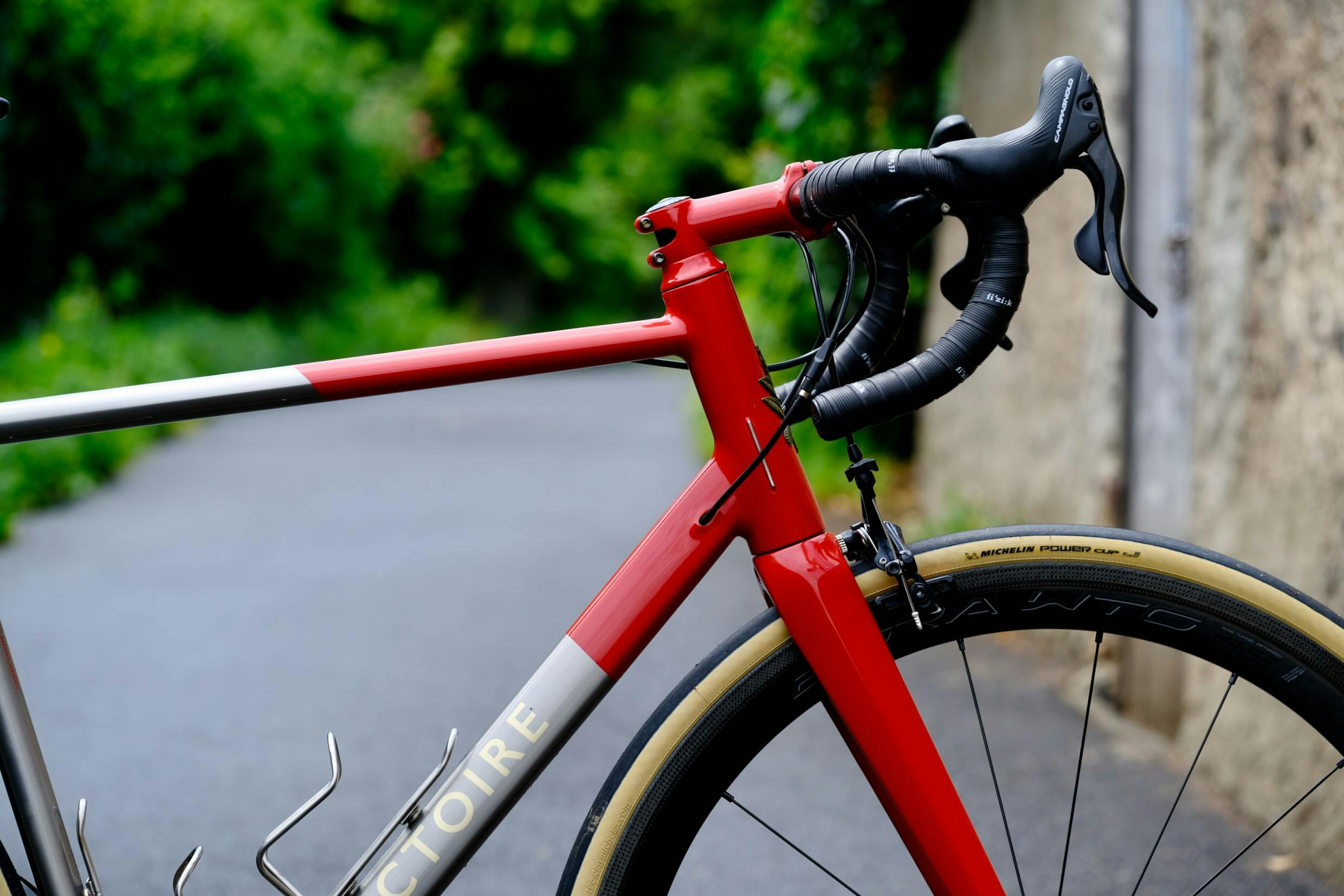 J'avais décrit une sensation déroutante dans mon précédent e-mail : en descente, à haute vitesse, l'absorption des défauts de la route me donnait l'impression d'être moins connecté à la route. Mais ce n'est pas le cas. Je n'ai plus à sauter certains obstacles, ni même à "soulager" (tirer vers le haut) le vélo. Je suis finalement encore plus connecté avec la route. Puis la position : je ne peux pas m'empêcher de comparer le Victoire avec mon précédent vélo. Sur le papier, il n'y avait pas beaucoup de différences : 5 mm plus court, 8 mm plus haut. Mais au guidon, ça change tout. Une sensation de contrôle supérieure, puis un bien meilleur confort. Par rapport à mon vélo carbone, j'ai l'impression que le vélo roule avec moi, qu'on pédale ensemble, je ne lutte plus comme avant. Pour l'instant je me contente de mes sorties habituelles, mais j'ai le sentiment que je pourrais faire le double de distance sans douleur ni fatigue, ce qui me paraissait peu envisageable auparavant. Puis bon, c'est particulièrement plaisant de rouler sur une telle machine. L'esthétique de l'ensemble est parfaite, je ne regrette aucun des choix qu'on a fait (merci encore pour les conseils). Puis le rosso corsa est sublime. C'est bien connu, les vélos rouges vont plus vite ! Tu as choisi les tubes devant moi lors de la visite de l'atelier, et maintenant quand on regarde le produit fini... Pour moi, c'est un peu de la magie ce que vous faites.