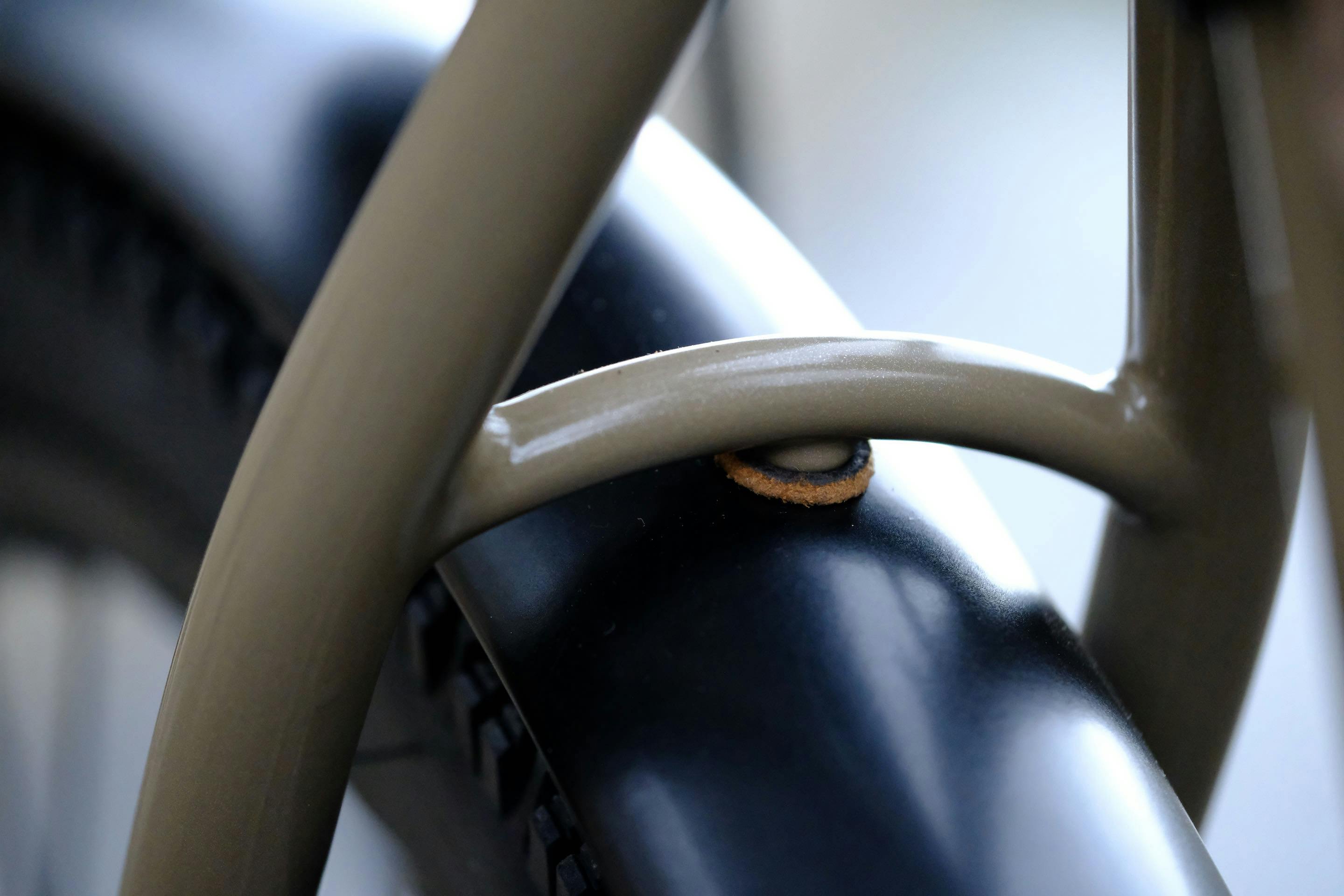 Lors d'un voyage comme celui de Christophe, les garde-boues subissent beaucoup de contraintes. Pour éviter qu'ils ne se desserrent ou soient endommagés, un point de fixation supplémentaire a été ajouté.