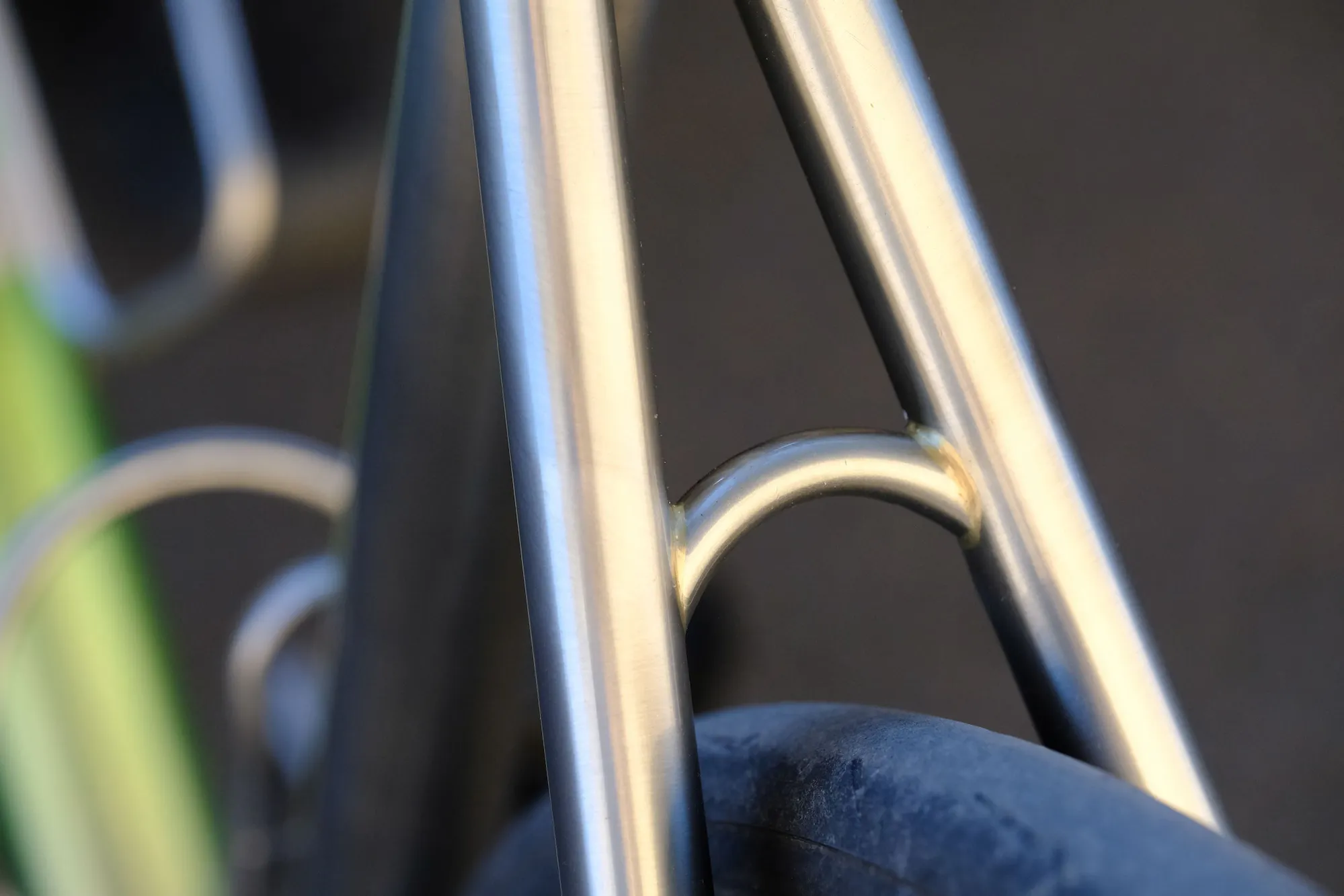 L'autre teinte a été choisie pour correspondre à la couleur des cordons réalisés avec le métal d'apport contenant 54% d'argent que nous utilisons pour les vélos Victoire. Il s'agit donc d'un doré clair, qui a été utilisé pour les marquages du vélo inscrits sur le tube diagonal et sur le tube de selle.