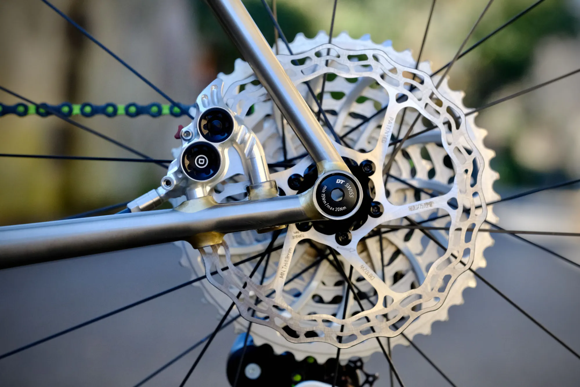 Un vélo de route n'exclut pas un freinage puissant, Didier a donc choisi des étriers Hope RX4 quatre pistons. Les quatre pistons permettent un freinage progressif, dosé et très puissant.