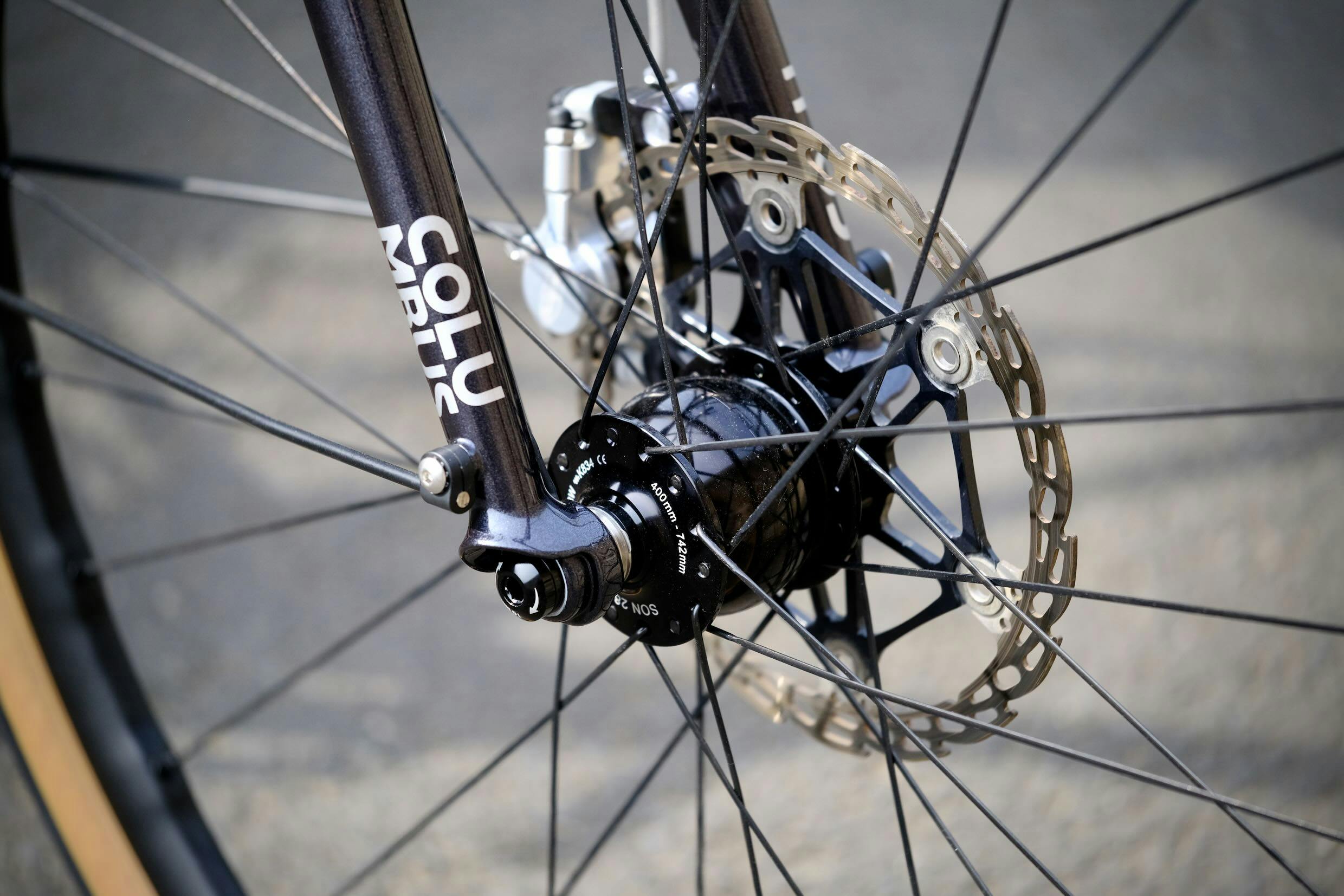 Petit clin d'oeil à son passé de VTTiste, Stéphane nous a fourni ses anciens freins de VTT Hope pour les monter sur son nouveau Victoire.