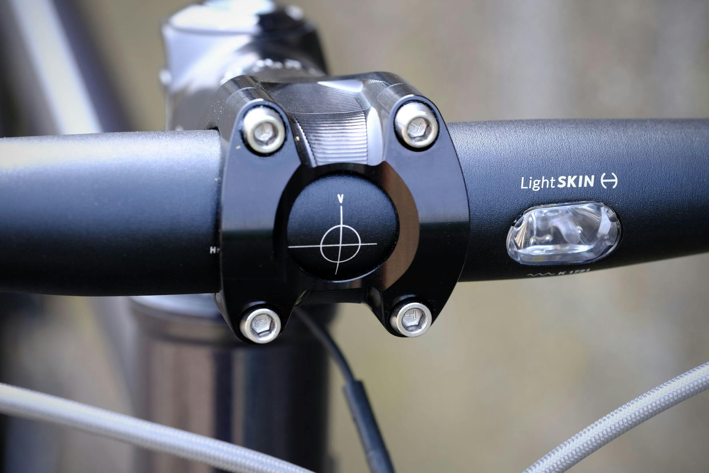 La lumière arrière est intégrée au tube de selle et celle avant dans le cintre, tous les deux fabriqués par Schindelhauer. La ligne du vélo s'en retrouve allégée et sobre, tout en limitant le risque de casse pour les lumières.