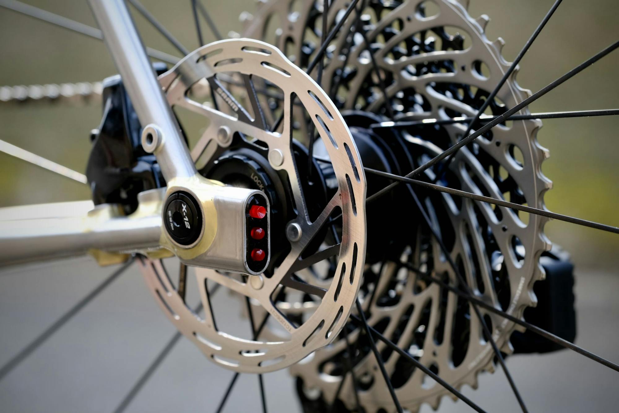 Les transmissions VTT offrent des plages de développement très importantes, et le groupe SRAM AXS offrent la possibilité d'un montage "mullet" : transmission VTT, avec des cocottes "route". On obtient le meilleur des deux mondes, avec une ergonomie de vélo de route ou gravel, et une plage de transmission qu'on ne retrouve qu'en VTT.
