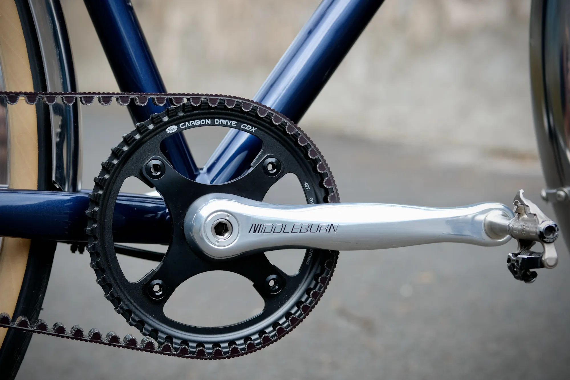 Le pédalier de Vincent est une rareté : un Middleburn fabriqué en Angleterre, compatible avec le moyeu Rohloff. Moderne mais d'un design classique, il s'accorde avec l'esthétique générale du vélo.