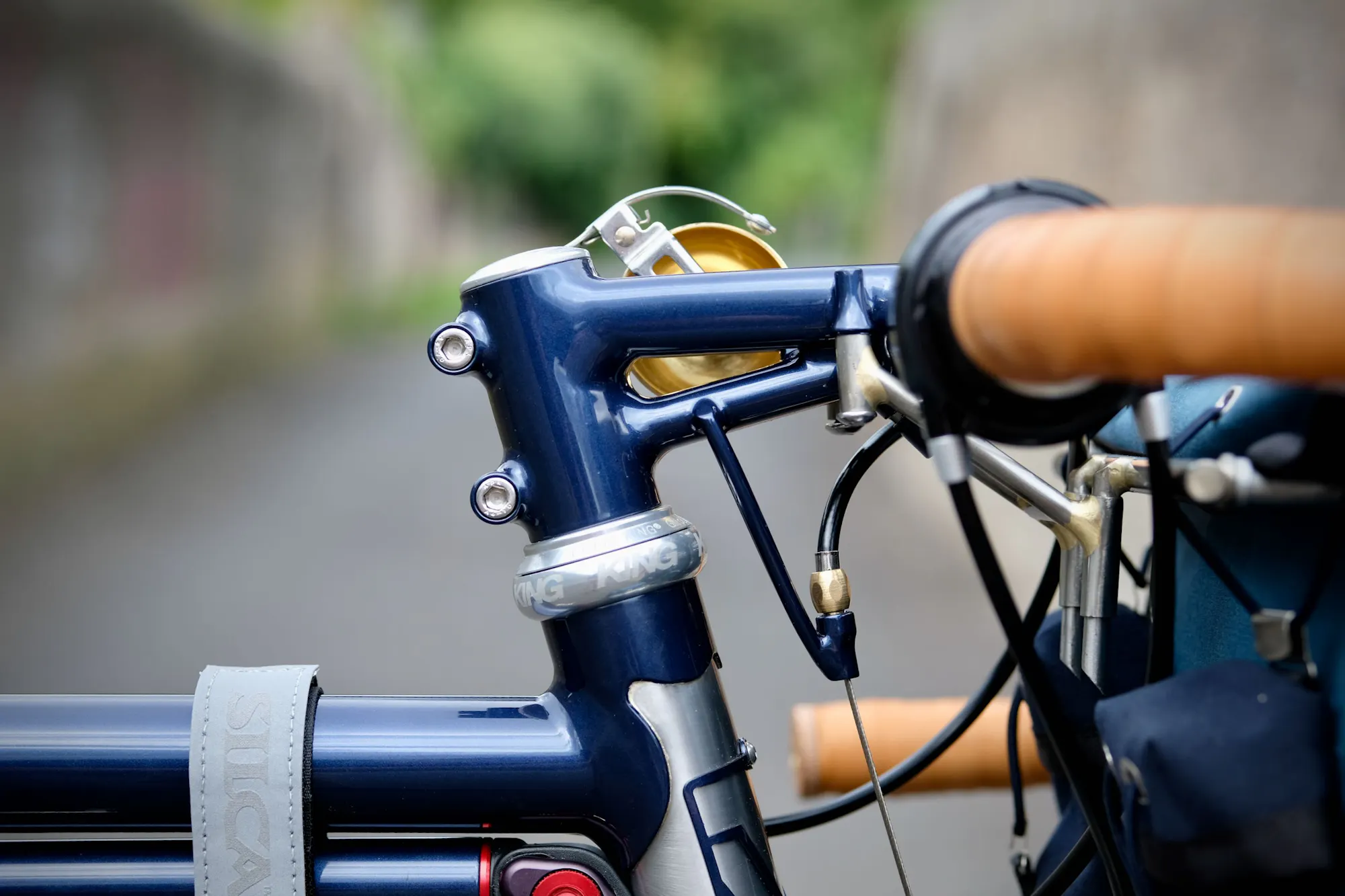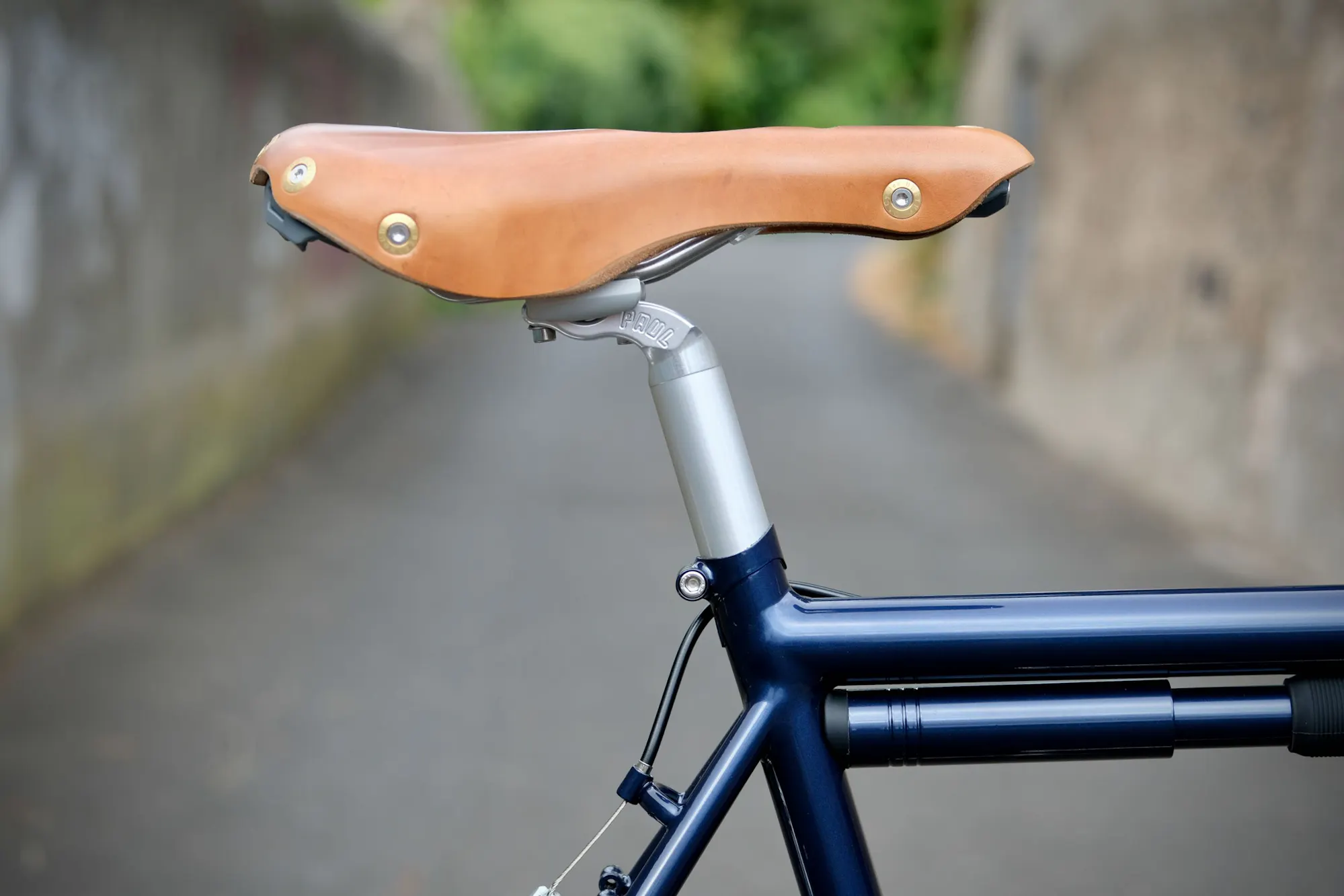La potence est notre modèle René, en hommage au mythique cadreur de Levallois. Présente sur beaucoup de nos réalisations, cette potence à la construction particulière à trois branches nous permet d’intégrer la butée de gaine de frein, la sonnette ainsi que le décaleur du porte-paquet.