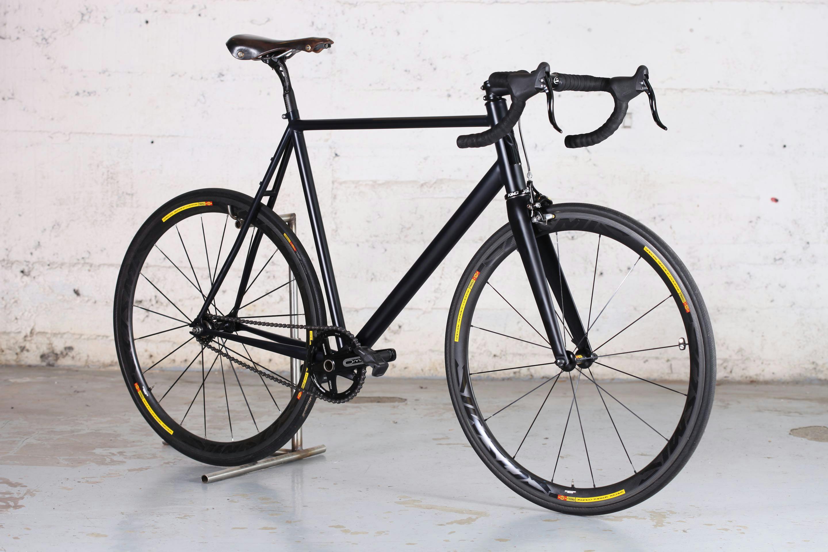 Même si ce vélo est un pignon fixe, la géométrie est beaucoup plus proche d’un vélo de route avec des angles plus couchés et une arrière plus long que sur un vélo de piste pour privilégier le confort plutôt que l’extrême maniabilité, peu utile en ultra-distance.