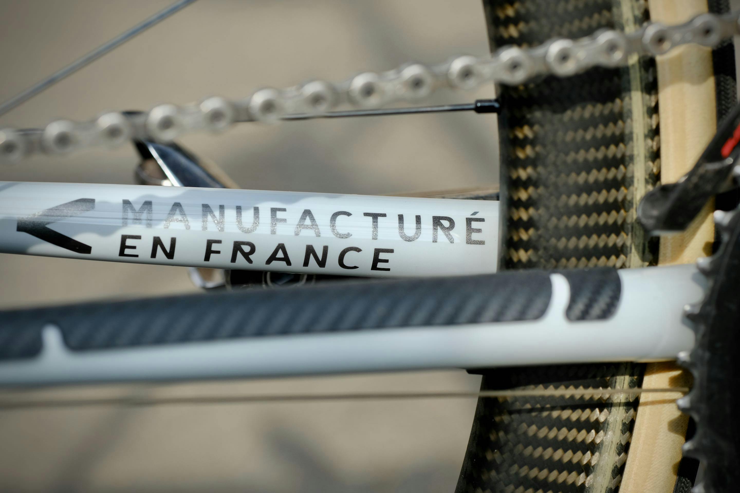 Le cadre ainsi que la fourche ont été peints par Julien en décembre 2018 chez Cole Coatings, à Londres, à l'occasion de la formation qu'il a effectué là bas pour acquérir la méthode nécessaire au processus de fabrication et de finition des vélos Victoire.