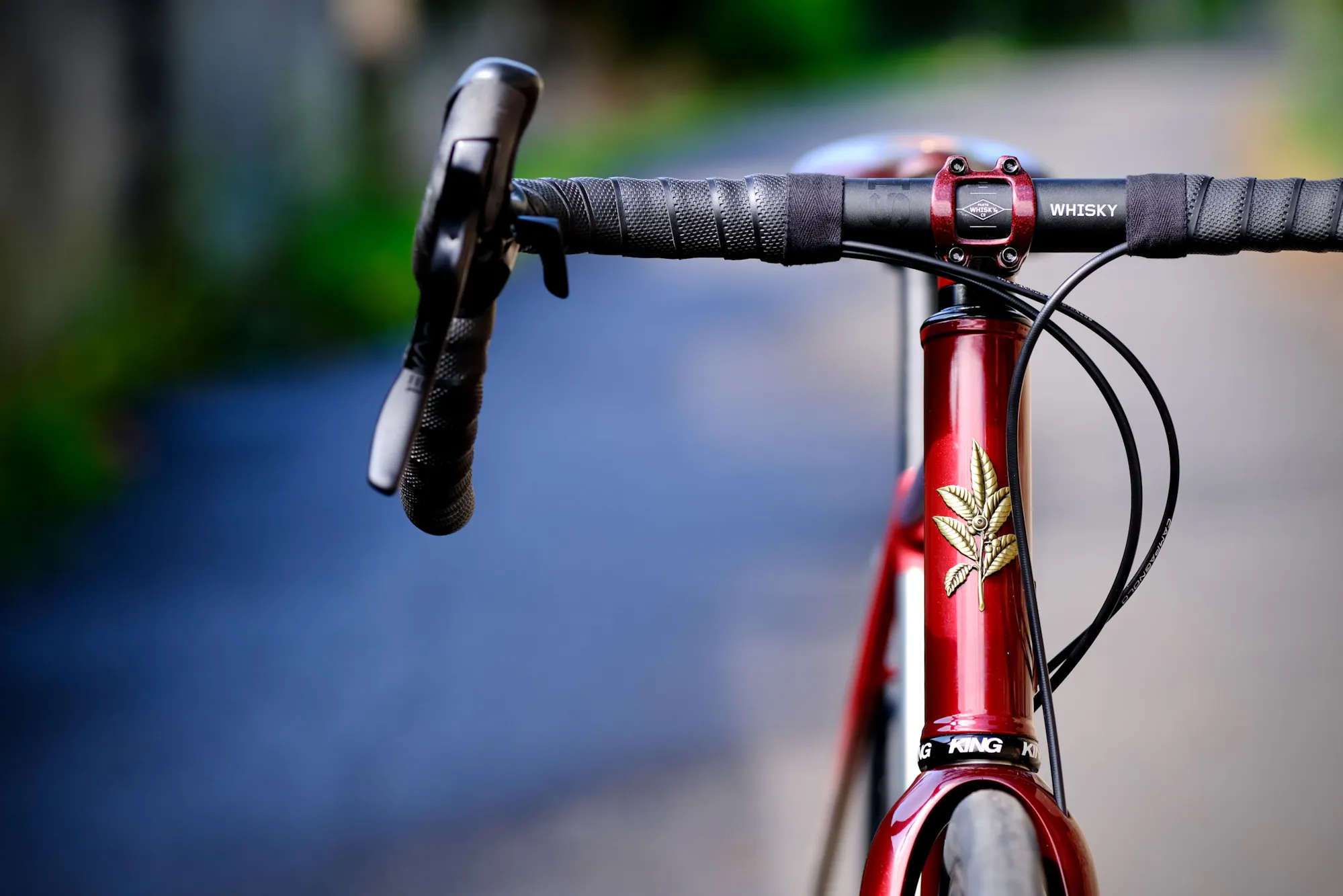 Pour rappeler les origines américaines de Taryn, nous avons sélectionné des composants Whisky. Avec les pièces françaises et italiennes, ce vélo résume l'ensemble de la démarche de Taryn : ses origines et ses voyages.