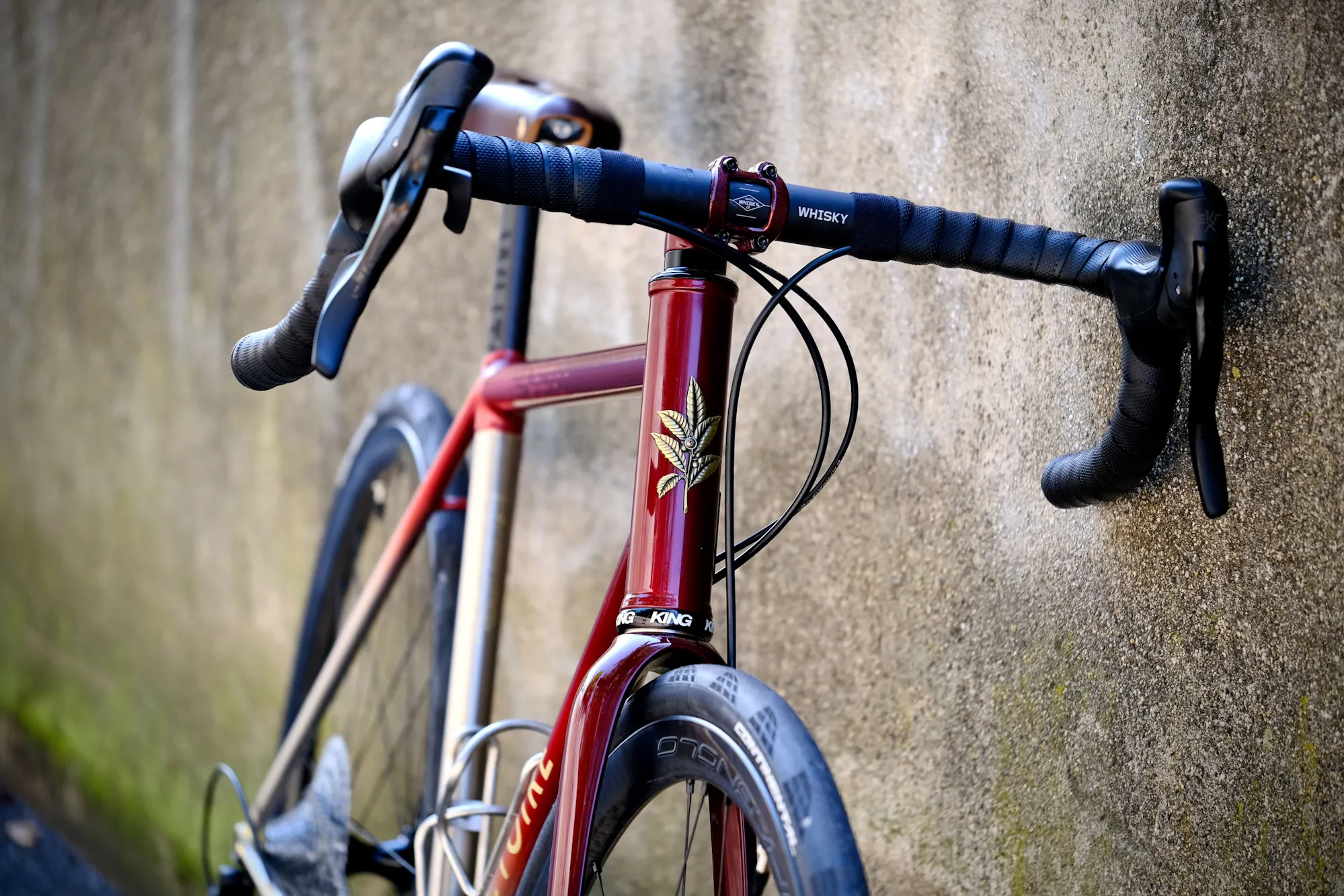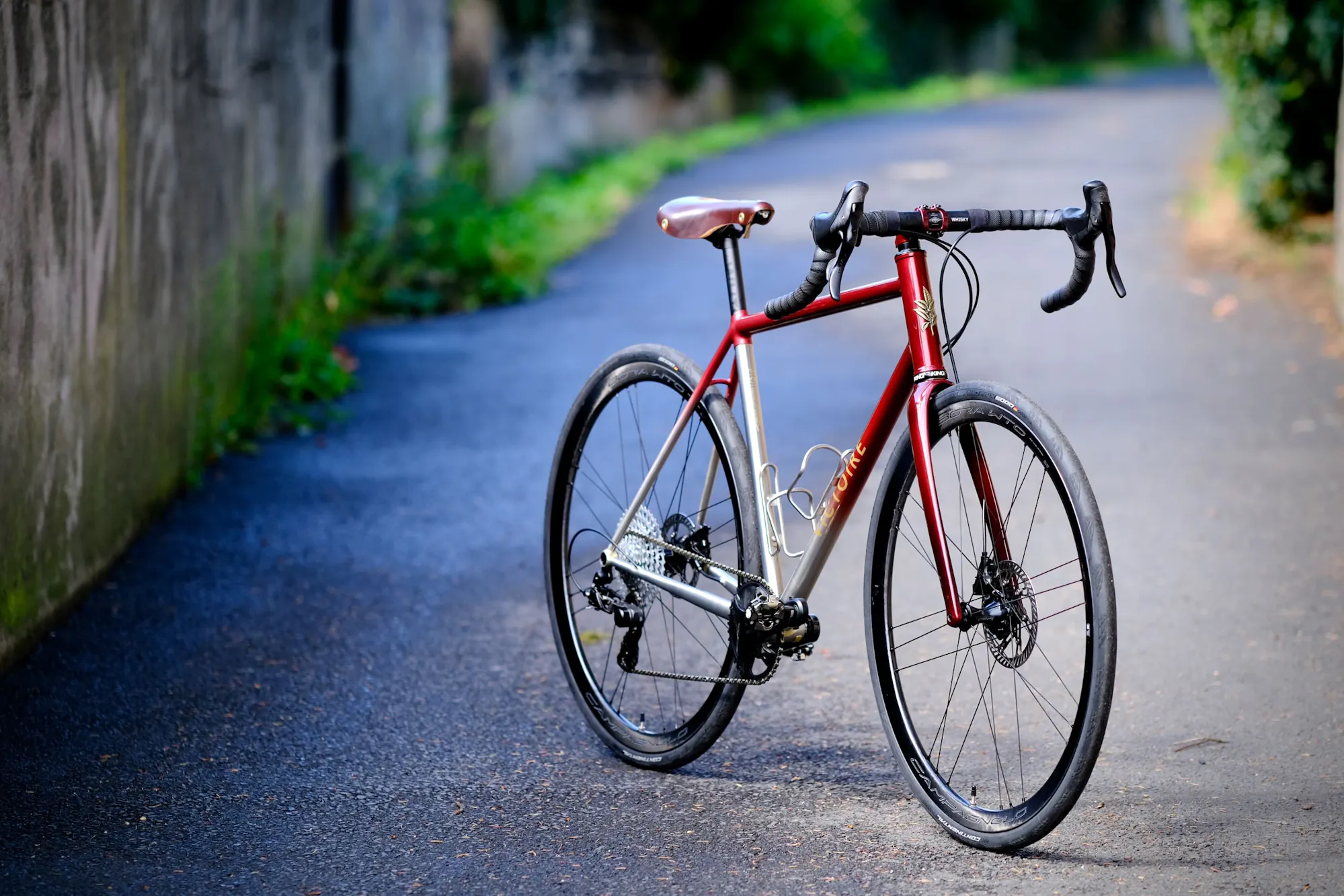 Pour rappeler les origines américaines de Taryn, nous avons sélectionné des composants Whisky. Avec les pièces françaises et italiennes, ce vélo résume l'ensemble de la démarche de Taryn : ses origines et ses voyages.
