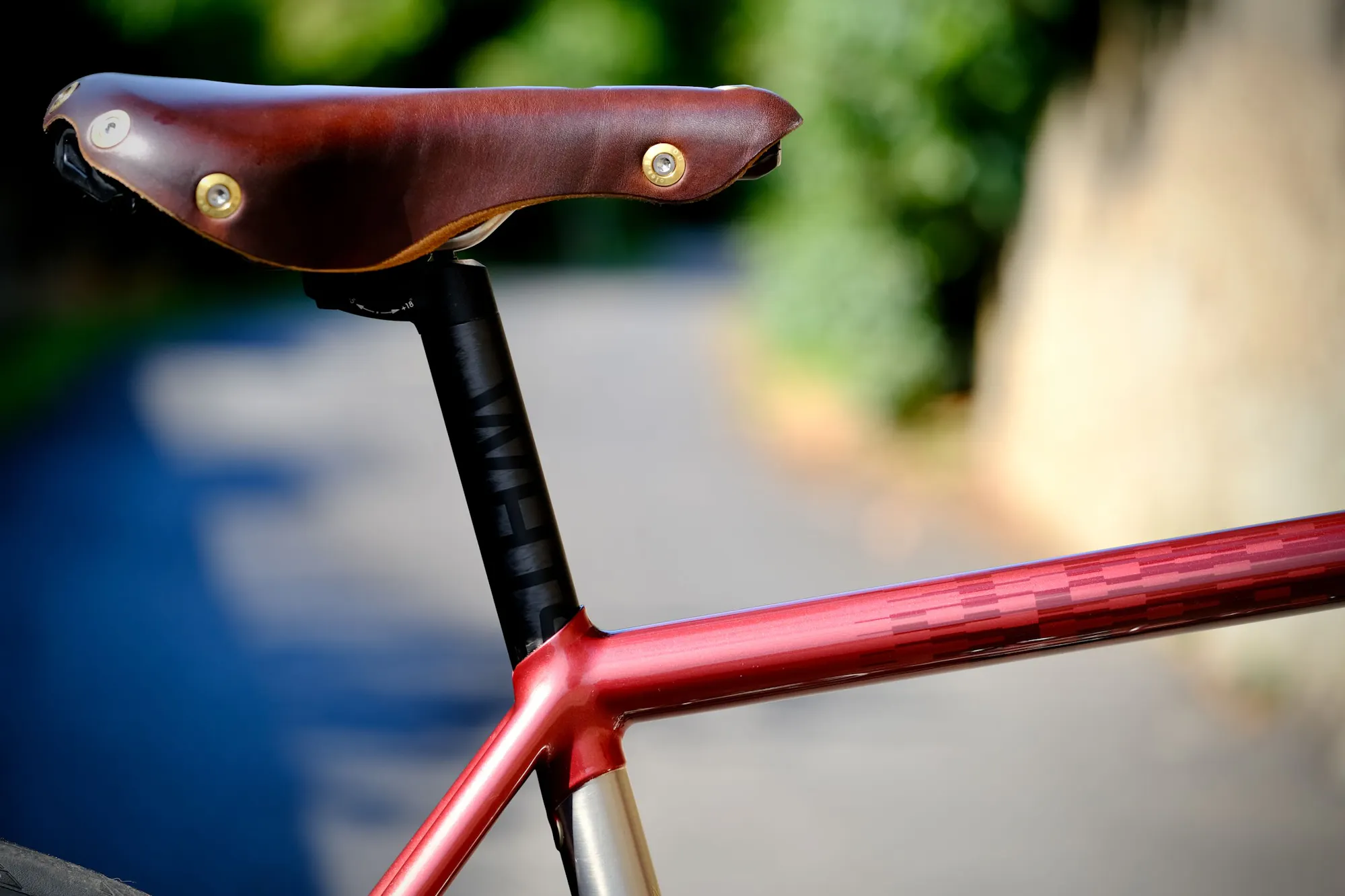 Taryn souhaitait un vélo confortable et d'origine française. Le choix d'une selle Berthoud s'est imposée naturellement : fabriquée en France et à la main dans un magnifique atelier à côté de Mâcon, cette selle en cuir offre un très bon confort pour les longues sorties. Son design adoucit l'apparence route du vélo en lui donnant un côté intemporel.