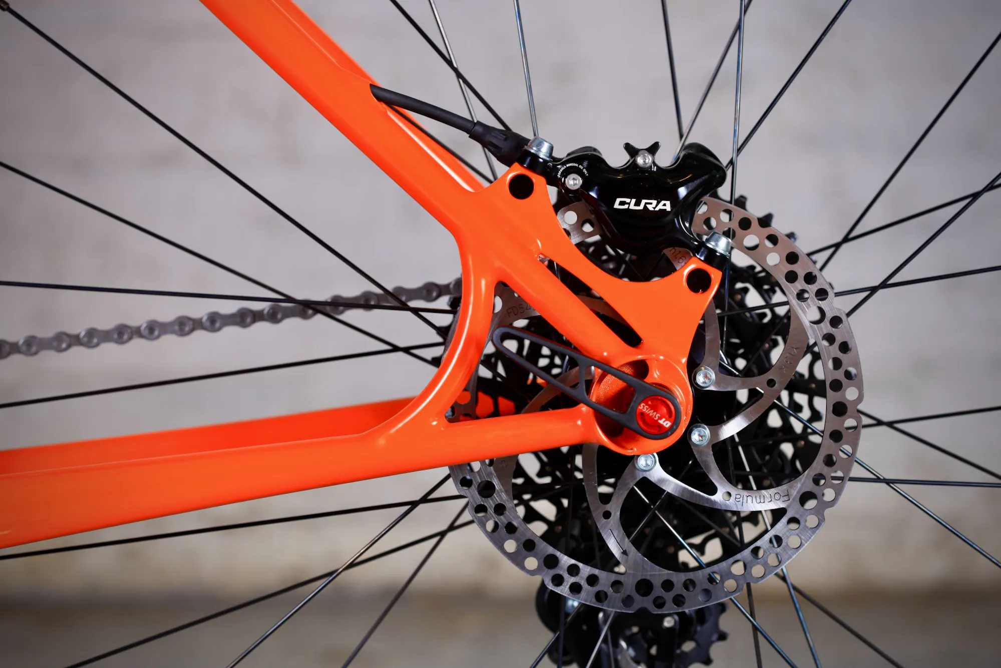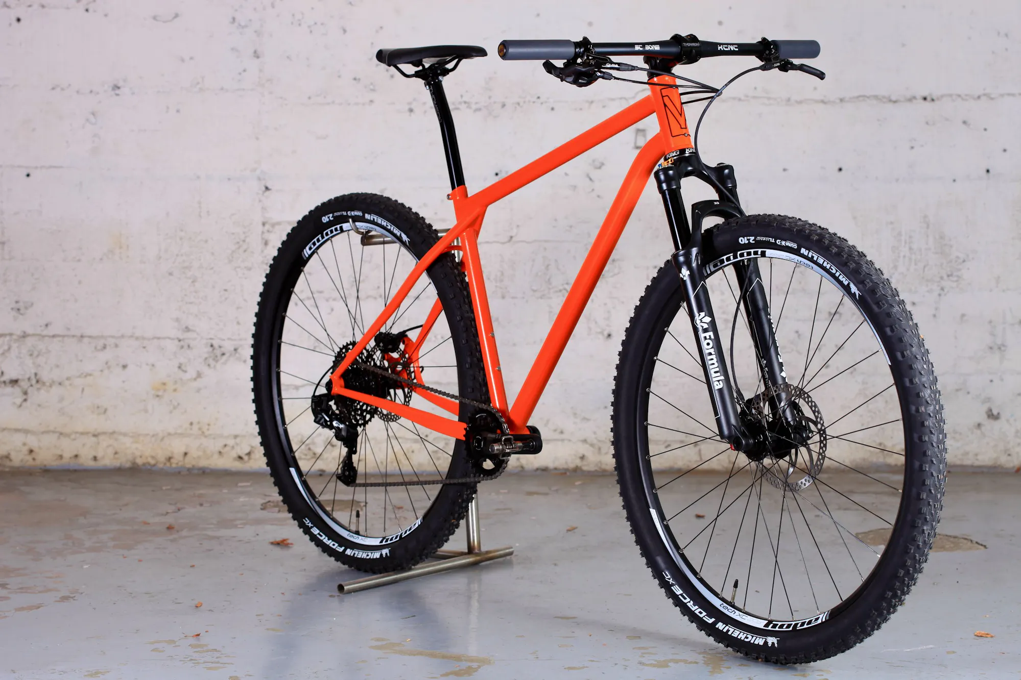 Le vélo de Gilles est équipé d'une Fourche Formula 33. Cette fourche de XC légère est très polyvalente et peut même être utilisée pour de l'enduro léger sur terrain accidenté. Formula est une marque italienne, ce choix correspond à notre volonté d'aller chercher des composants le plus près possible de notre atelier, une volonté également importante pour Gilles.