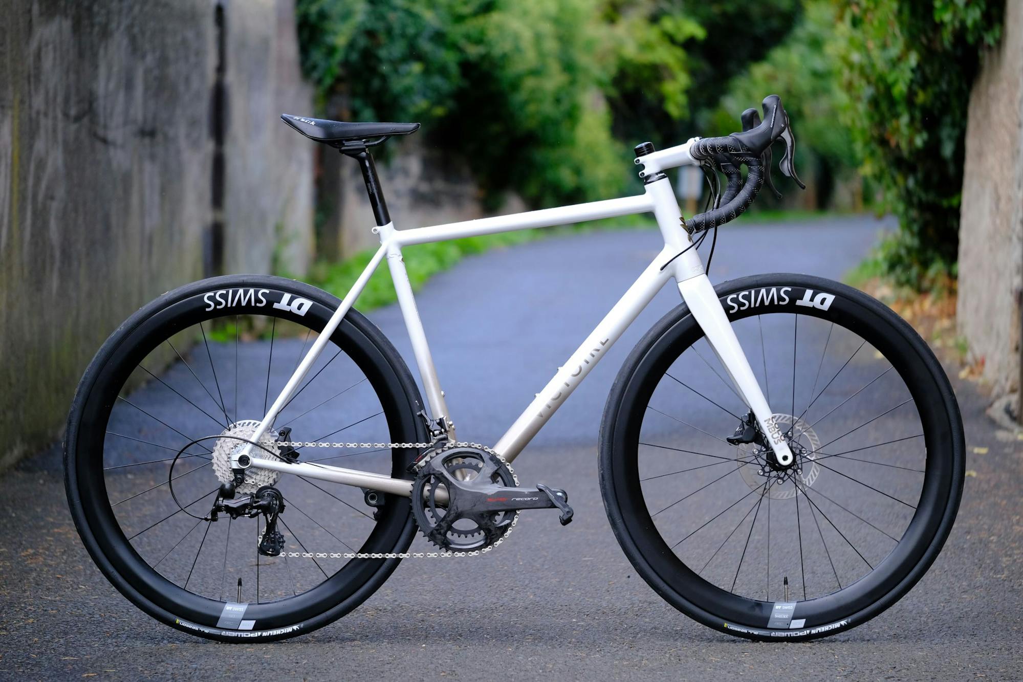 Nous avons sélectionné le groupe Super Record chez Campagnolo, en version mécanique. Bien qu'il existe aussi en version électronique, sa version mécanique ne sera jamais déchargée ou victime d'obsolescence, une thématique qui nous est chère chez Victoire. Les freins à disques offrent un freinage facile à doser et sécurisant, même sous la pluie.